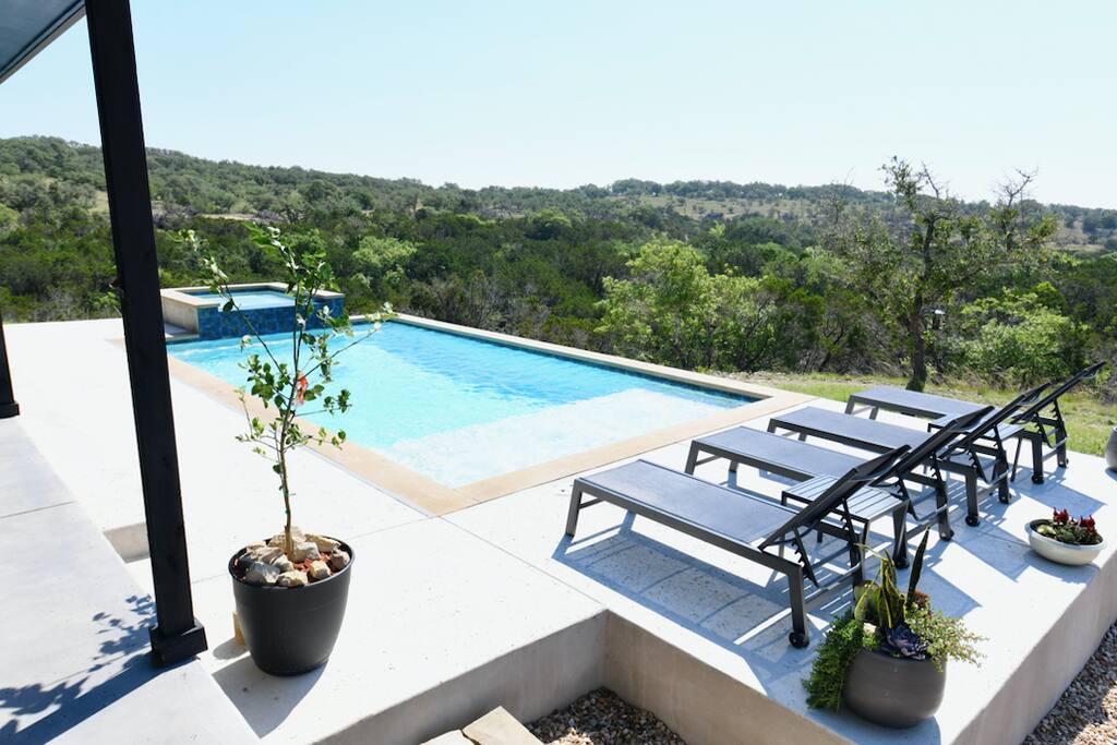 Welcome to our Ranch. Located on 180 Acres in Dripping Springs, the Nook Villa is a Relaxing Luxury Modern Home with all the amenities you could possibly need. Decorated Mid-Century Modern and accented by beautifully restored antique pieces. This home is built around the west-facing picturesque 180-degree stunning views showcased throughout the indoor and outdoor spaces. Relax on the large comfortable sofa, the luxury hot tub, or on the covered porch to take in the beautiful sunsets.