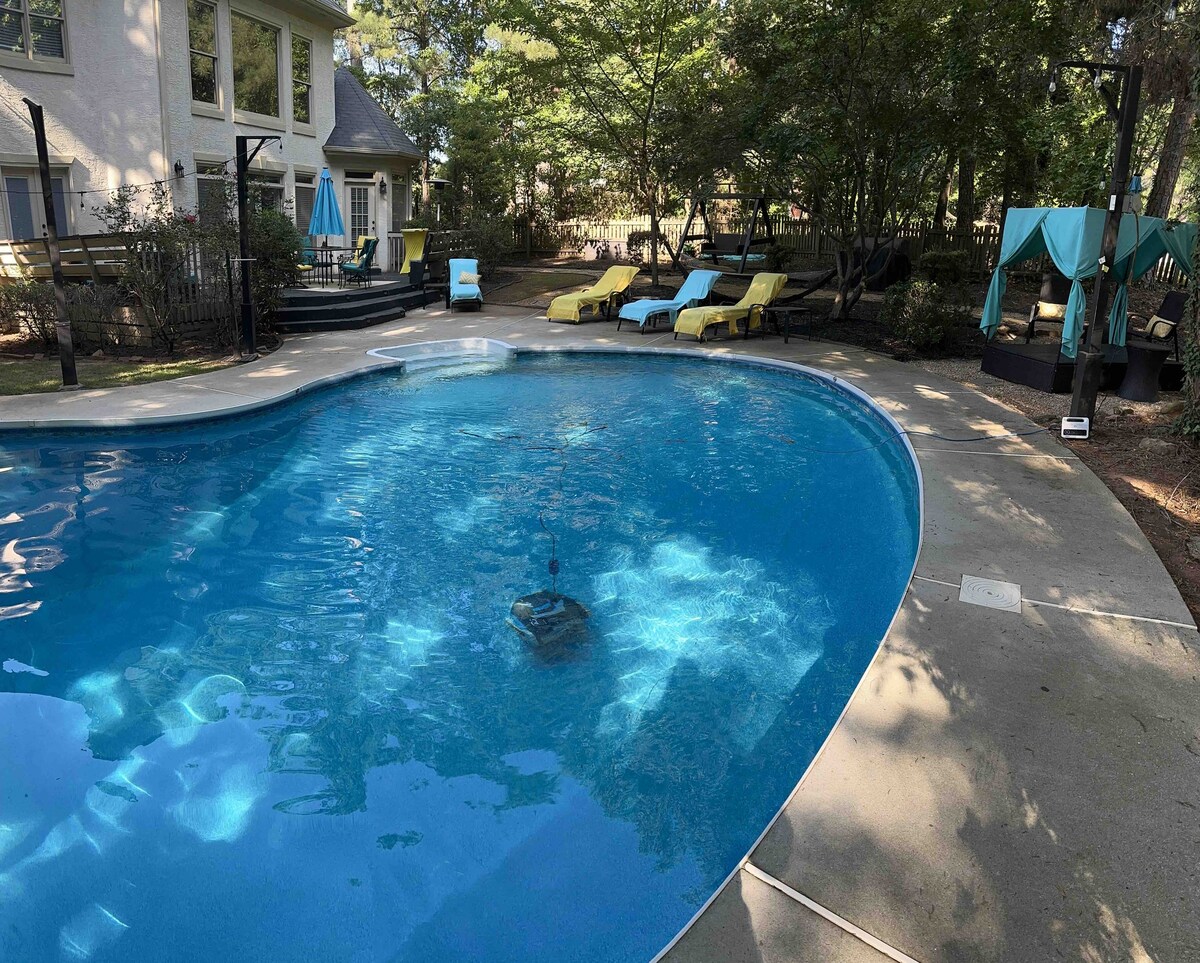 ¡Joya escondida perfecta para tu escapada en grupo o familiar para disfrutar de la Copa Mundial 2026! ¡Relájate en el cómodo sofá viendo un fuego o reclínate en la sala de cine! Relájate en el patio trasero del oasis con fogata después de darte un chapuzón en la piscina o en el jacuzzi, escuchando música, viendo las estrellas desde el mirador, columpio o hamaca. Terapeuta de masajes móvil o chef a solo una llamada de distancia ¡A 22 millas del centro de Atlanta! ¡PROHIBIDO fumar y traer mascotas! Multa de $1000/$500 NO se permiten reservaciones de terceros