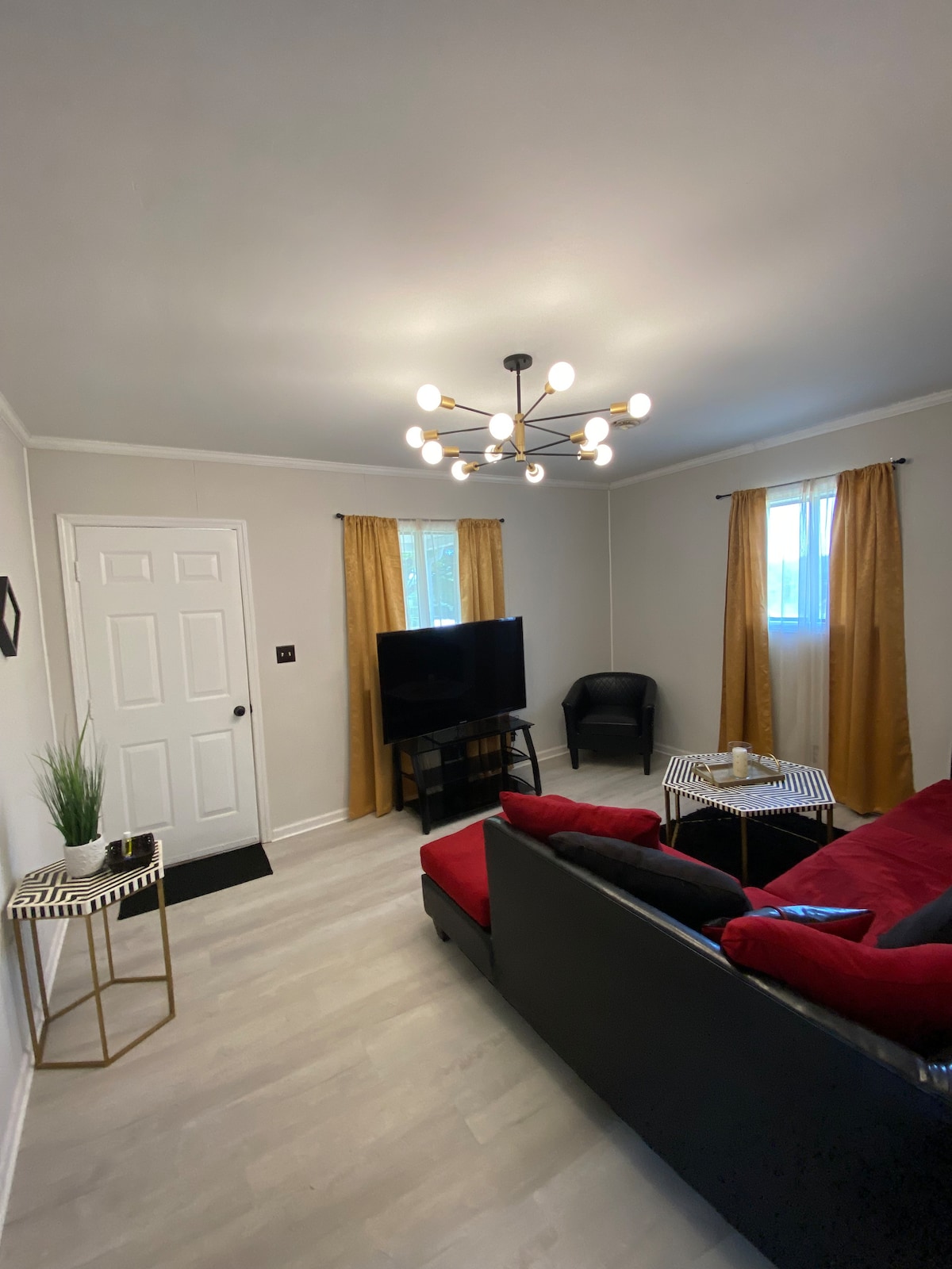 2 camas tamaño completo y 1 sofá modular. Esta elegante casa es perfecta para familias pequeñas y viajeros solitarios. Ubicada en Martinsville, VA, esta hermosa casa está a minutos de restaurantes, tiendas y más. A 5 minutos del hospital y a 10-15 minutos del circuito. Nuestro alojamiento tiene todo lo necesario para que te sientas cómodo durante tu estancia. Desde todos los elementos esenciales de la cocina, hasta artículos de tocador, área al aire libre con patio, barra de café, juegos, camas/mantas cómodas y mucho más. Se admiten mascotas. $20 por mascota por noche
