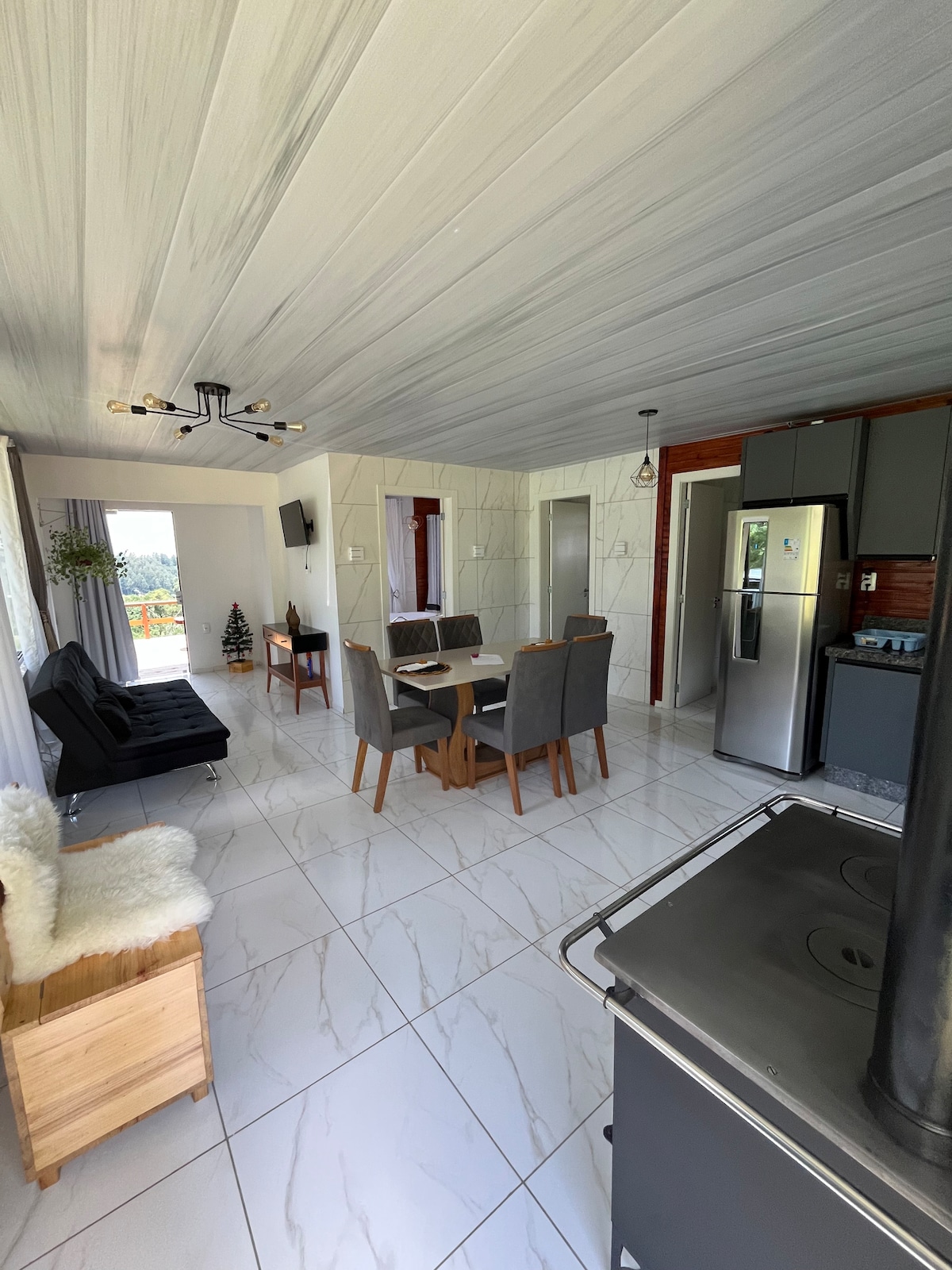 Ubicado entre Ibicaré (5 km) y Treze Tílias (12 km), representa tranquilidad en medio de la naturaleza. La estructura del Chalet tiene: • Aire acondicionado frío/calor en las habitaciones; • Chimenea interior/exterior. • Parrilla de barbacoa interior; •Vista impresionante; - Cocina completa; • Televisión inteligente; •Estacionamiento privado Perfecto para desconectarse del ajetreo y el bullicio de la vida cotidiana, tiene dos dormitorios, dos baños, una gran sala de estar y una cocina de buen gusto. •🐶Se admiten mascotas (tarifa por estancia)