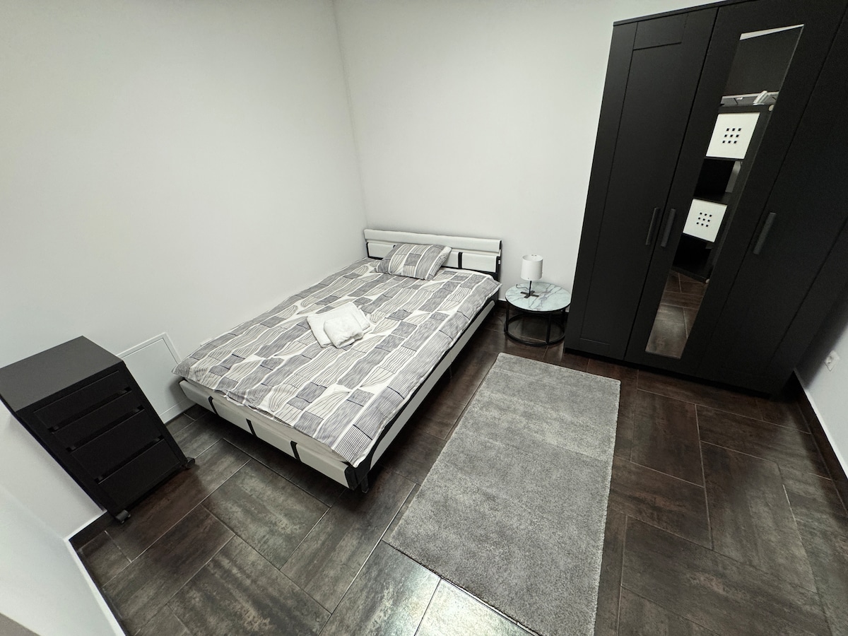 Un apartamento elegantemente renovado y amueblado, ubicado en la planta baja. Un departamento de una habitación con una cama doble, baño con una ducha, espacio de estar con un armario, un comedor y una cocina totalmente equipada. Incluye wifi, TV con SmartTV, calefacción central con termostato digital en todas las habitaciones y persianas eléctricas. ESTACIONAMIENTO PÚBLICO GRATUITO junto a la casa A 15 minutos de la capital en auto. La estación de autobuses está justo enfrente de la casa. Acceso a la autopista a 1,3 km.