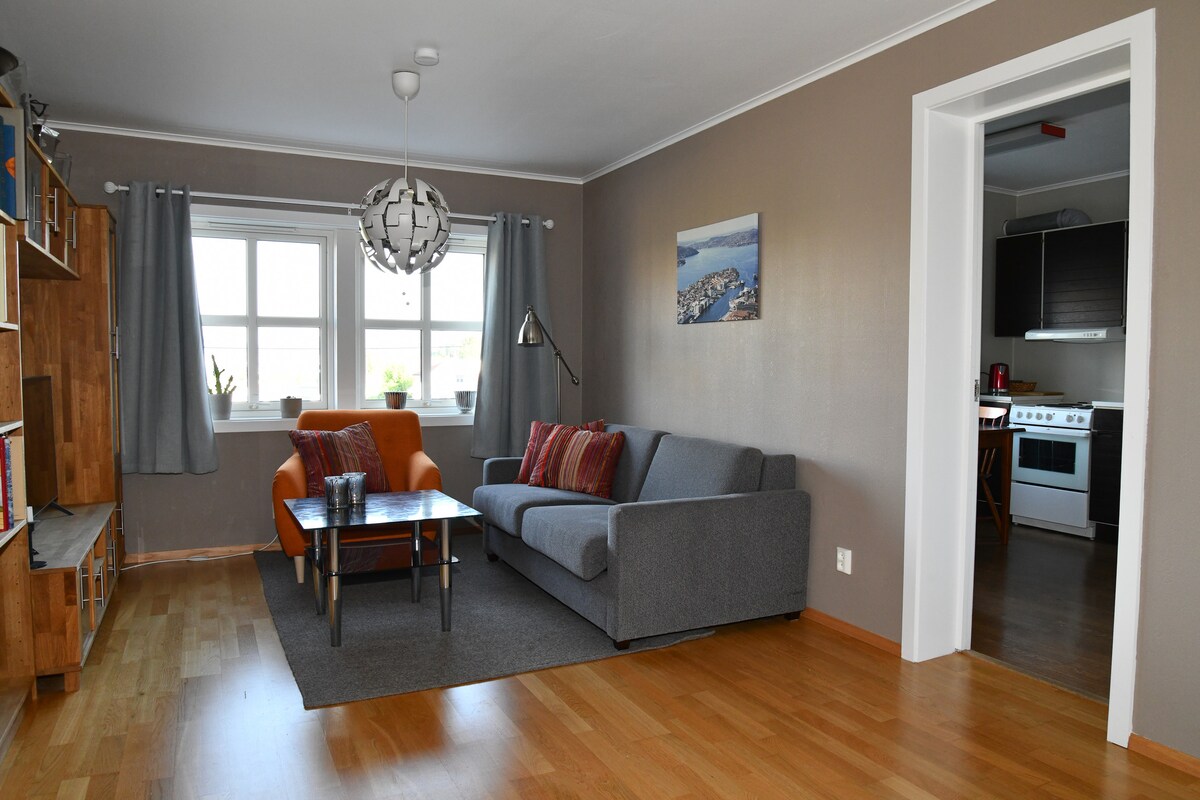 Discover Bergen from our cozy apartment with a stunning ocean view. Just 15 minutes from the city if you travel by car. The bus stop is a 2 minute walk from the apartment. Features a double bed, living room with TV, and fully equipped kitchen. Enjoy meals and the view on the outdoor terrace. Private parking for one car. Perfect for couples and solo travelers seeking a peaceful base to explore Bergen's beauty. The neighbourhood is a quiet place.