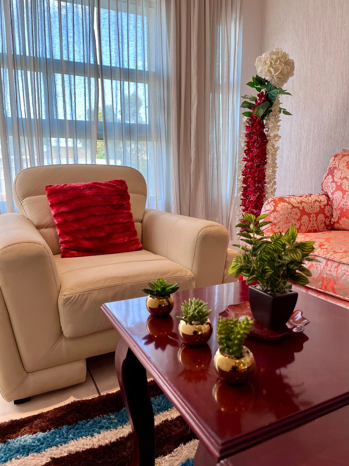 Es una estancia en planta alta con balcones en las habitaciones tiene buena vista hacia las montanas y muy buena iluminacion, las habitaciones tienen una cama king size, en total son 3 camas king size. su television, su ventilador. el departamento cuenta con su cocina integral,frigobar,parilla,cafetera,licuadora trastes para cocinar.Estamos por la carretera nacional y a 5 minutos en automóvil del jardin surrealista. **** no aceptamos mascotas.