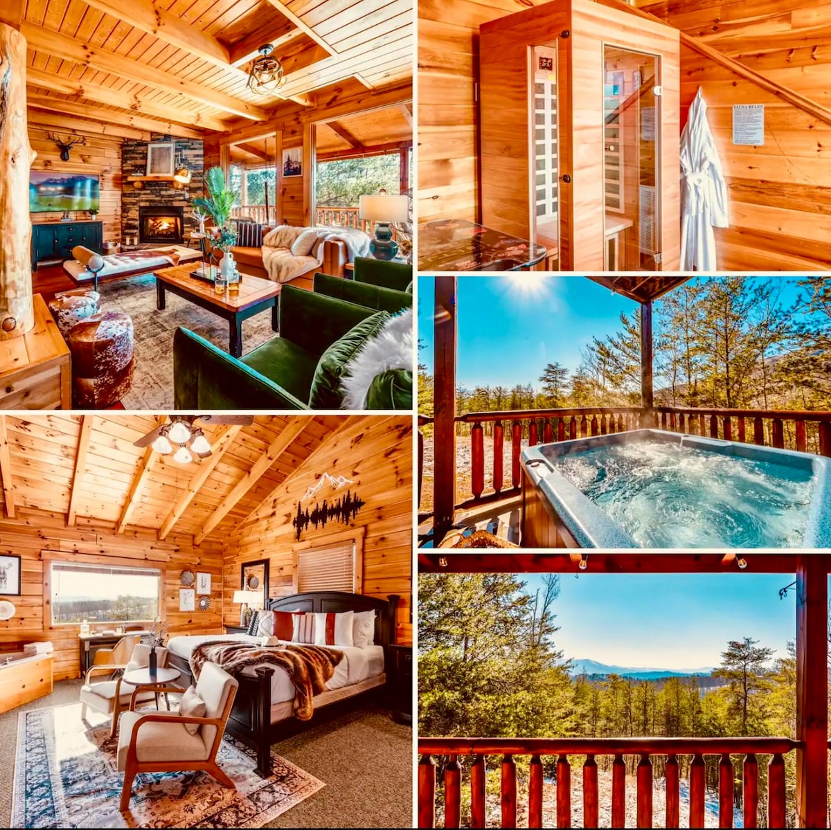 Luxury Cabin w/Best Views!Hot Tub+Sauna!Fireplace