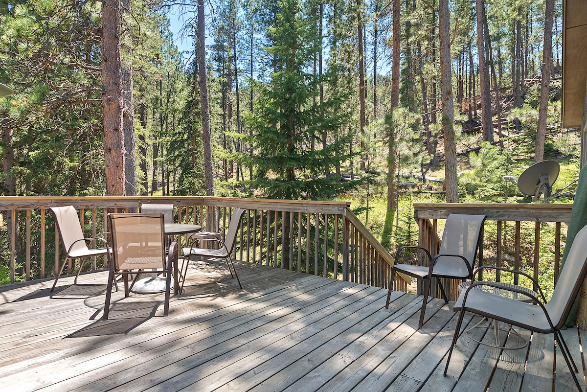 Alójate en nuestro recientemente remodelado Forest Haven. Es aislado y privado, pero a pocos minutos de la ciudad. ✔Estacionamiento techado gratuito con 3 puestos de garaje ✔Check-in autónomo a través del código de la puerta ✔Gran terraza con parrilla ✔Vistas magníficas, rodeado de árboles ✔Vida silvestre: ¡a los ciervos les encanta nuestro patio! ✔A 40 minutos en auto del monte Rushmore ✔1 hora en coche hasta el Parque Nacional Badlands ✔A 47 minutos en coche del Parque Estatal Custer ✔A 50 minutos en auto de Deadwood ✔Cocina completa. ✔WiFi rápido ✔Lavandería en la suite Aprobado por el número de licencia del condado de Pennington CUCU24-0010
