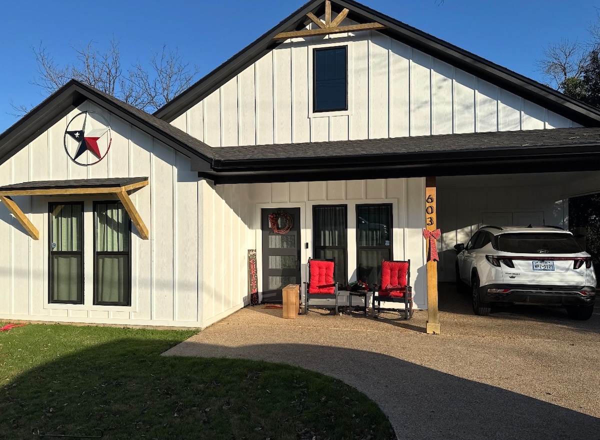 Escape to Serenity on the Brazos River! Your cozy shophouse offers a retreat from city life, with beautiful river access, Hot Tub, pickle ball court, ping pong table, exercise equipment, and nature trails. Try your luck fishing from a kayak or playing disc golf with your friends. Unwind by the fire pit, relax in your 3 swings, and enjoy stunning river views. Perfect for romantic getaways, family vacations, or solo retreats. Message me with any questions or Military/First Responder discounts!