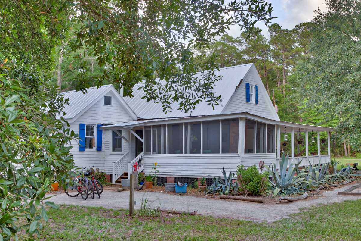 ¡Cabaña romántica en tres acres rodeada de hermosos canales de Carolina del Sur con vistas infinitas por todos lados! La casa es apta para perros, tiene un patio delantero totalmente vallado y un porche protegido. Cocina completa, estacionamiento privado, lavadora y secadora, TV de 55 pulgadas con DirecTV. A 10 minutos en coche del parque estatal Hunting Island y a 20 minutos del centro de Beaufort y de las principales atracciones. ¡La casa de campo está bellamente amueblada con piezas personalizadas para que esta sea tu mejor escapada de lujo a la campiña!