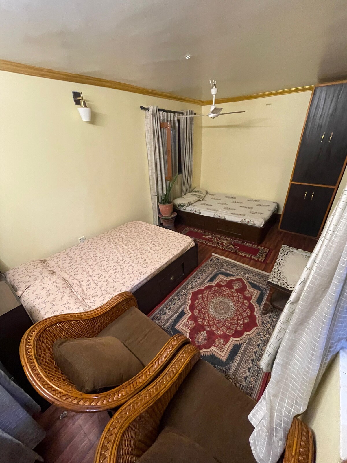 Este apartamento 1BHK está en el primer piso de un edificio residencial cerca de la oficina de DM. Ten en cuenta que hay que caminar 1 minuto cuesta abajo hasta la propiedad y que los huéspedes deben traer su propio equipaje. NOTA * No hay estacionamiento para vehículos de 4 ruedas disponible en la propiedad. * Agua potable envasada disponible por un costo adicional * No se permite lavar la ropa. * Servicio de limpieza diario no incluido en el precio indicado * Calefactores disponibles bajo pedido de noviembre a marzo a 300 ₹ adicionales por noche.