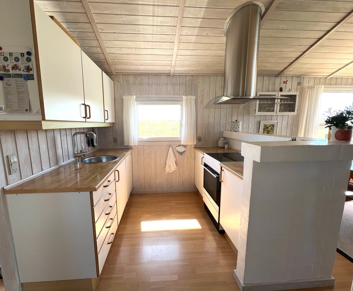 Le damos la bienvenida a nuestra acogedora y tranquila casa de verano, rodeada de hermosa naturaleza y cerca de la playa. Aquí hay mucho espacio para toda la familia, con tres dormitorios, un gran loft y 2 baños. La terraza soleada de la casa está aislada y cuenta con un comedor techado. Área: Complejo turístico costero de Skallerup: Actividades para toda la familia – parque acuático, spa, deportes, parque infantil y tienda de comestibles Købbmand a 2,3 km (1,4 millas) Playa a 325 metros Is Café 300 m Lønstrup y el faro de Råbjerg Knude a 7 km Naturaleza, vida silvestre y cielos estrellados Oceanario del Mar del Norte Fårup Summerland