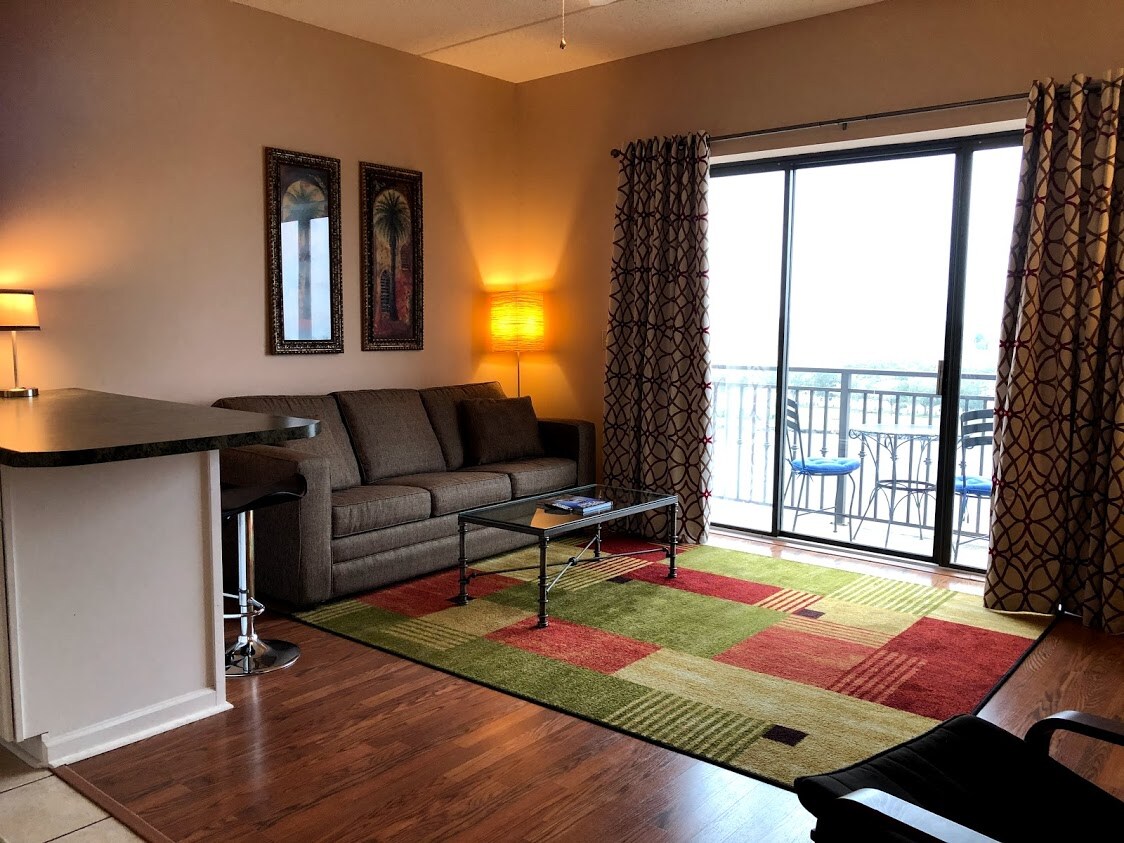 ¡Esta es realmente la MEJOR ubicación en el centro de Wilmington! ¡Tu balcón está justo sobre el River Walk con una enorme vista sin obstáculos del río y preciosas puestas de sol! ¡Se incluye una plaza de aparcamiento, una cama tamaño king y una ducha de hidromasaje con chorros! Este espacio luminoso y recién renovado es único debido al enorme balcón con vistas al río Cape Fear y la atención al detalle que hará que tu estancia sea perfecta. ¡Utilizamos muebles de alta gama con toques adicionales para que tu estancia sea inolvidable!