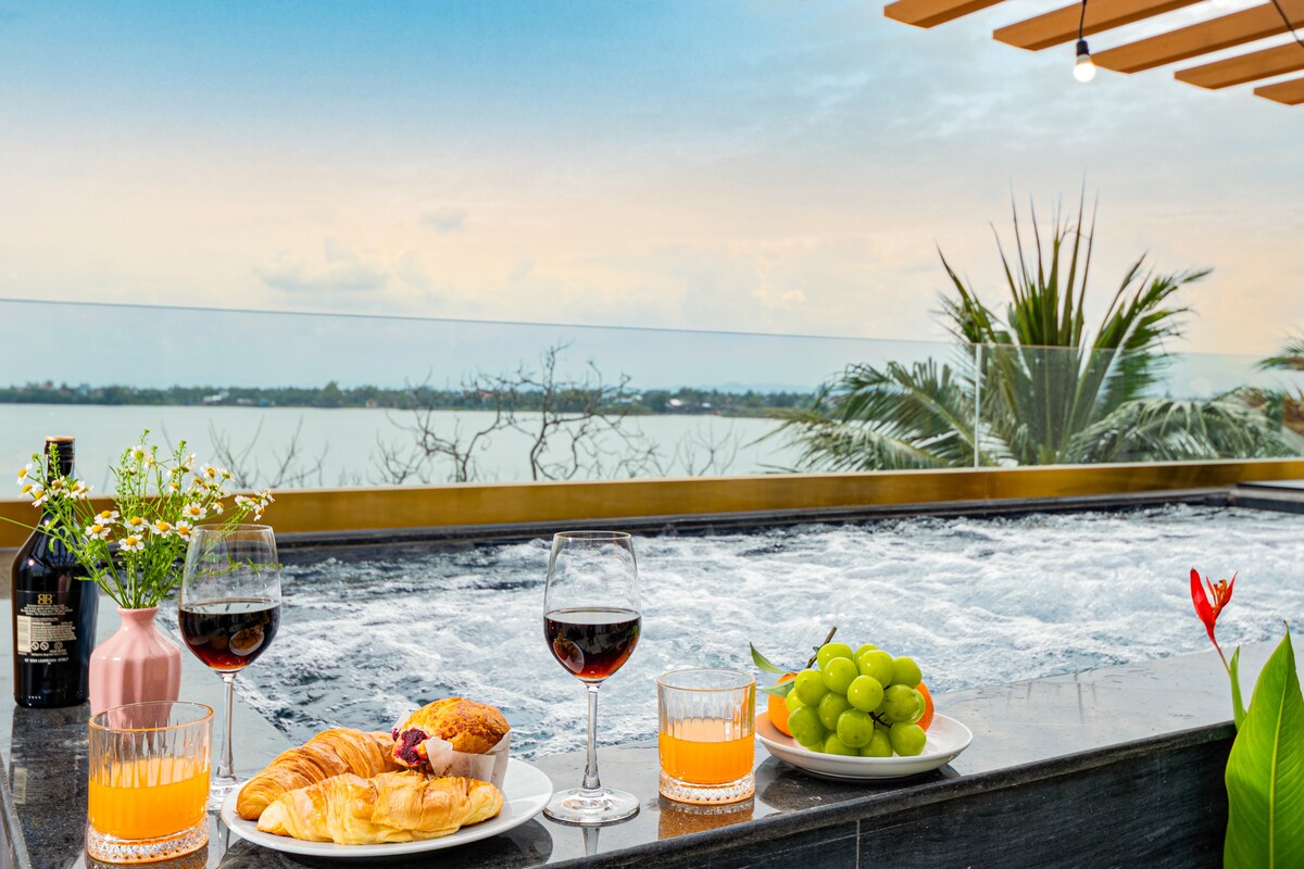 Vó Villa es una villa frente al río de 3 dormitorios en Hội An con una piscina infinita en la azotea, sauna, jacuzzi y cocina gourmet. Perfecta para un máximo de 9 personas, esta moderna villa tiene una piscina privada en la azotea, sauna y jacuzzi con impresionantes vistas al río Thu Bon. Disfruta de un espacio de trabajo dedicado, cocina gourmet y privacidad serena. Un oasis tranquilo te espera. Nuestro objetivo es hacer de nuestro hogar un espacio amable y acogedor para todos. IG: @copiavilla.hoian