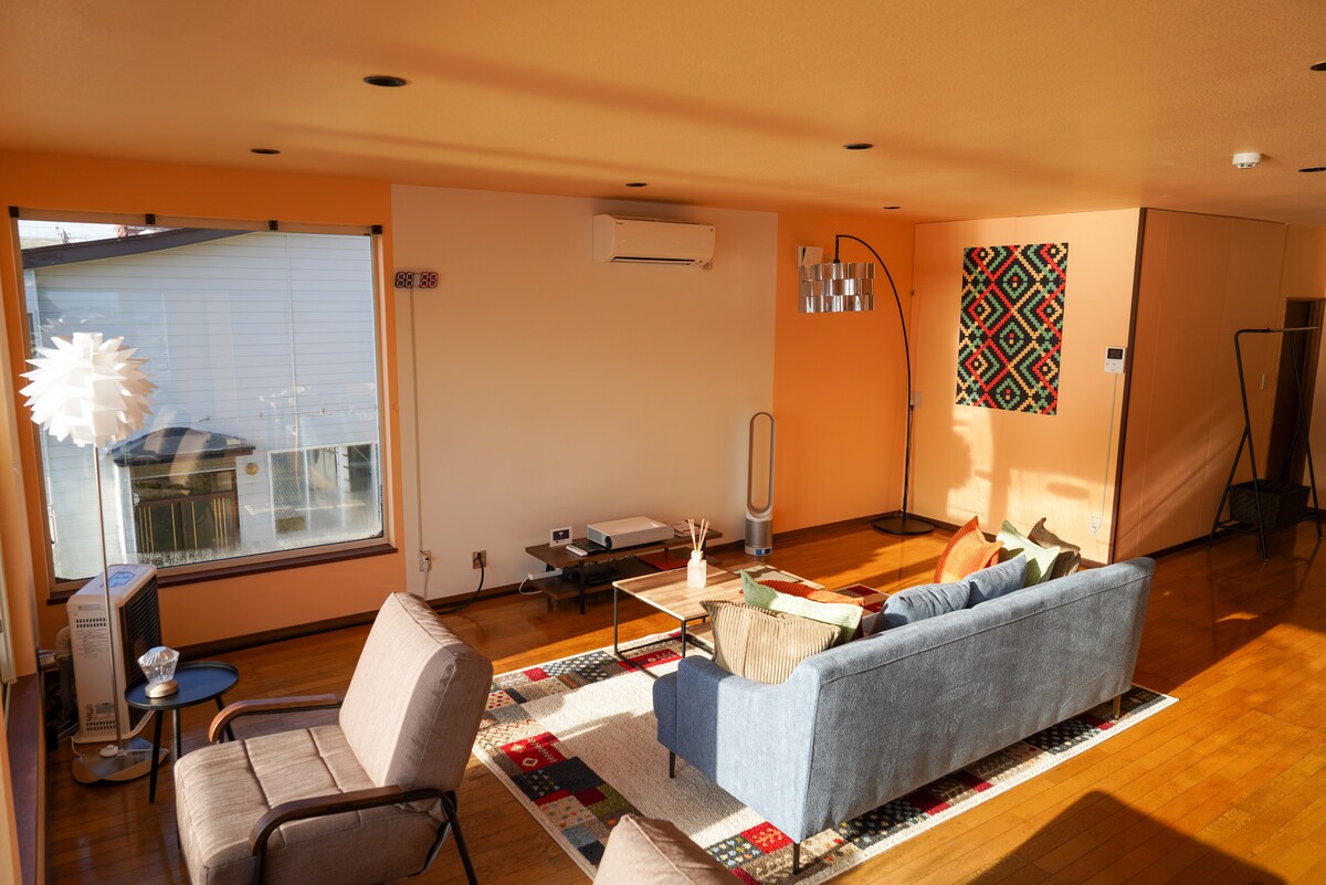 Amplio refugio familiar con estacionamiento gratuito Alójate en esta casa renovada de un solo piso (3LDK) donde los 3 dormitorios se conectan directamente con la amplia sala de estar. El estacionamiento está al lado de la entrada. ¡Ofrecemos juguetes y juegos para niños y una silla de masaje para adultos! Después de hacer turismo, relájate en la gran sala de estar, duerme en camas futón y crea recuerdos duraderos. El teleférico del monte Hakodate y la principal zona turística están a solo 5 minutos en auto. Nota: Situado en una zona residencial tranquila cerca de la terminal del tranvía.