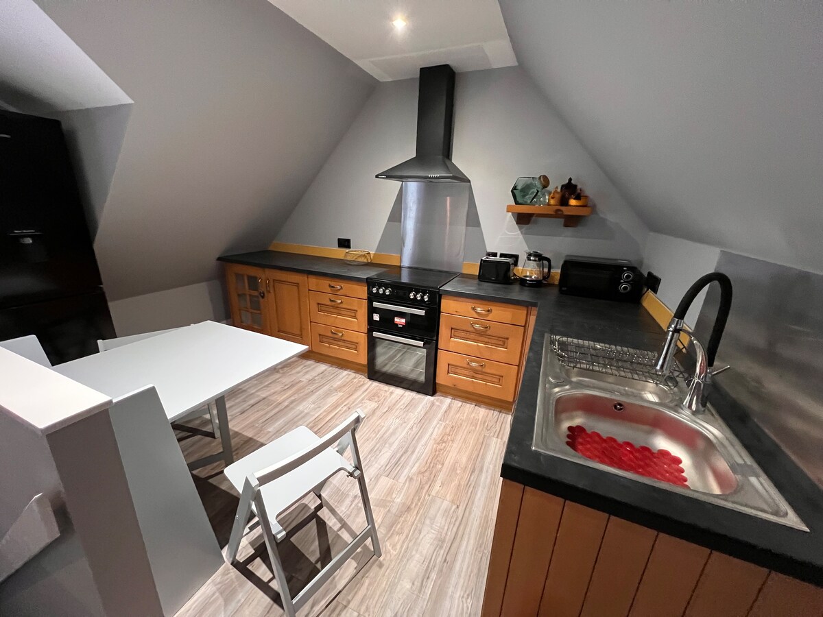 Escápate a esta encantadora cabaña de madera en un entorno semi-rural con hermosas vistas al jardín. Disfruta de un acogedor retiro con suelos revestidos, estructuras a la vista y un baño privado con ducha de tres piezas. La cocina está equipada con un combo de microondas/freidora de aire y nevera, perfecto para comidas fáciles. Hay aparcamiento gratuito disponible y estás a pocos minutos de las conexiones de la carretera A50, que ofrecen acceso rápido a las atracciones cercanas. ¡Ideal para una escapada tranquila!