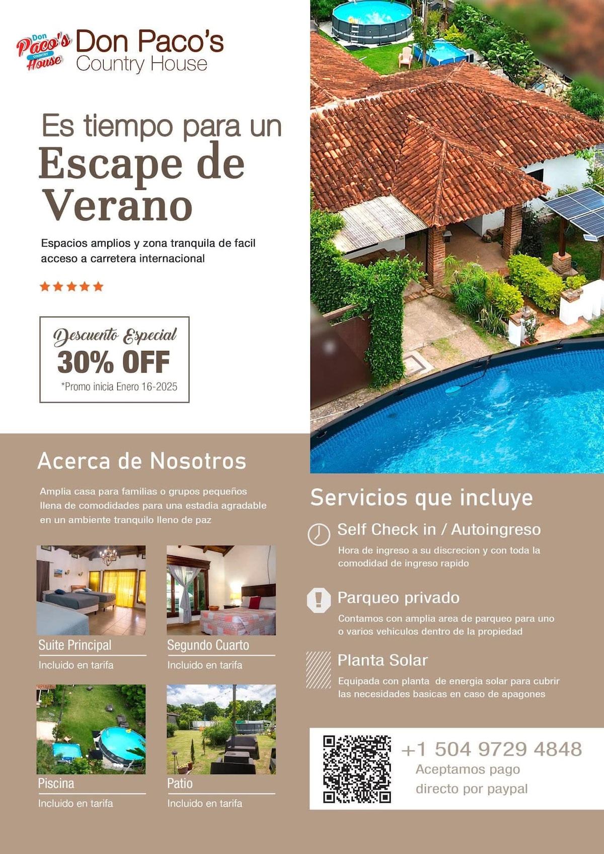 Casa Don Paco is a sparkling clean, located at 6 blocks from central park. 2 bedroom 9 beds, ecological house with amenities: washing machine, mini split A/C in all spaces, stove, 2 refrigerators, coffee maker, microwave, toaster, blender, pots & pans plus swimming pool, free wifi, Smart tv w/ cable+netflix, base price for 8 guests but can accommodate up to 16 paying extra per extra guest, floor mattresses will be provided for extra guests.