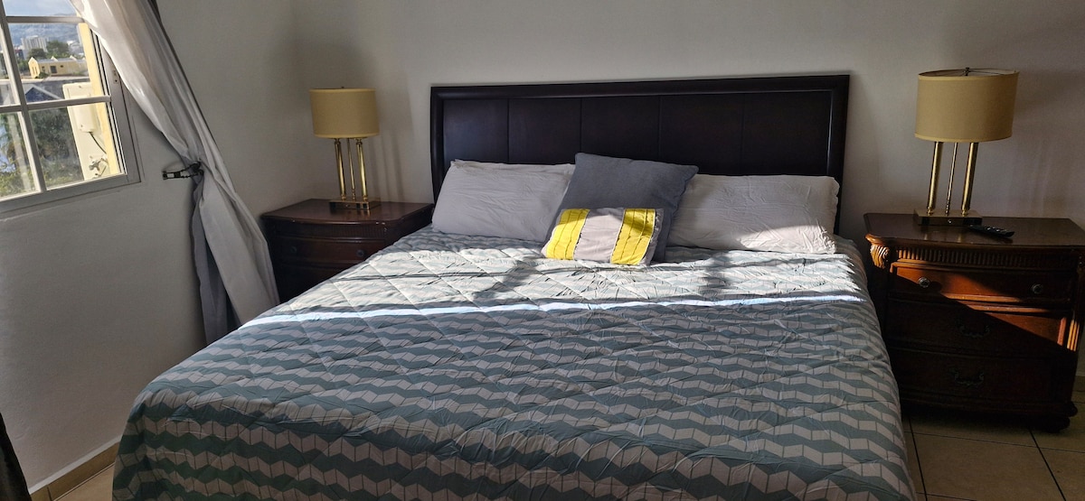 Cómodo, acogedor, tranquilo y seguro apartamento de 1 habitación con aire acondicionado, Smart TV, WIFI, servicio de cable, baño con ducha, salita, desayunador, cocina equipada con estufa, refrigerador, microondas, licuadora, utensilios de cocina para que puedas preparar tu desayuno o cena. Ubicado en el sector Norte de la ciudad, en una residencial privada con vigilancia las 24 horas; cerca de Mall Gallerias, Pricesmart, Circle K, farmacia, restaurantes, Universidades como ser UNAH-VS, CEUTEC