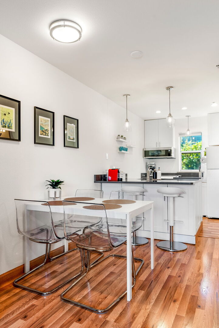 Este apartamento de un dormitorio tiene toques modernos y una planta abierta. La unidad ha sido completamente renovada y es perfecta para cualquier escapada al monte Hood. La sala de estar tiene un bonito sofá con Chase, WiiU y un gran televisor OLED 4k. Hay muchos ganchos y un secador de botas para todo tu equipo mojado. El dormitorio tiene un área de trabajo dedicada, cama tamaño king y mucho espacio para toda tu ropa. La cocina está equipada con todo lo necesario para preparar una comida y tiene capacidad para 6 personas. La nevera es épica.