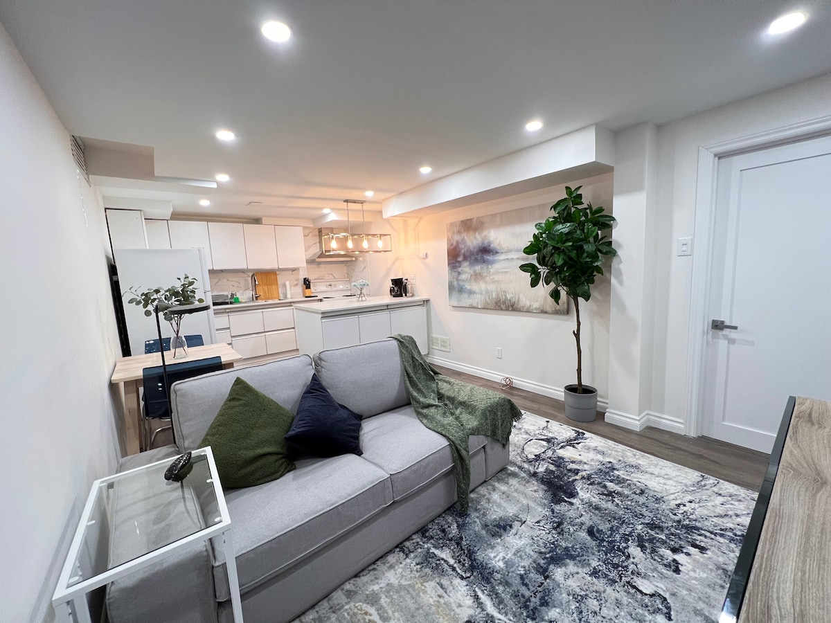 Calificación promedio: 5 de 5; 22 evaluacionesSuite con entrada independiente: acogedor sótano de 1 dormitorio con estacionamiento