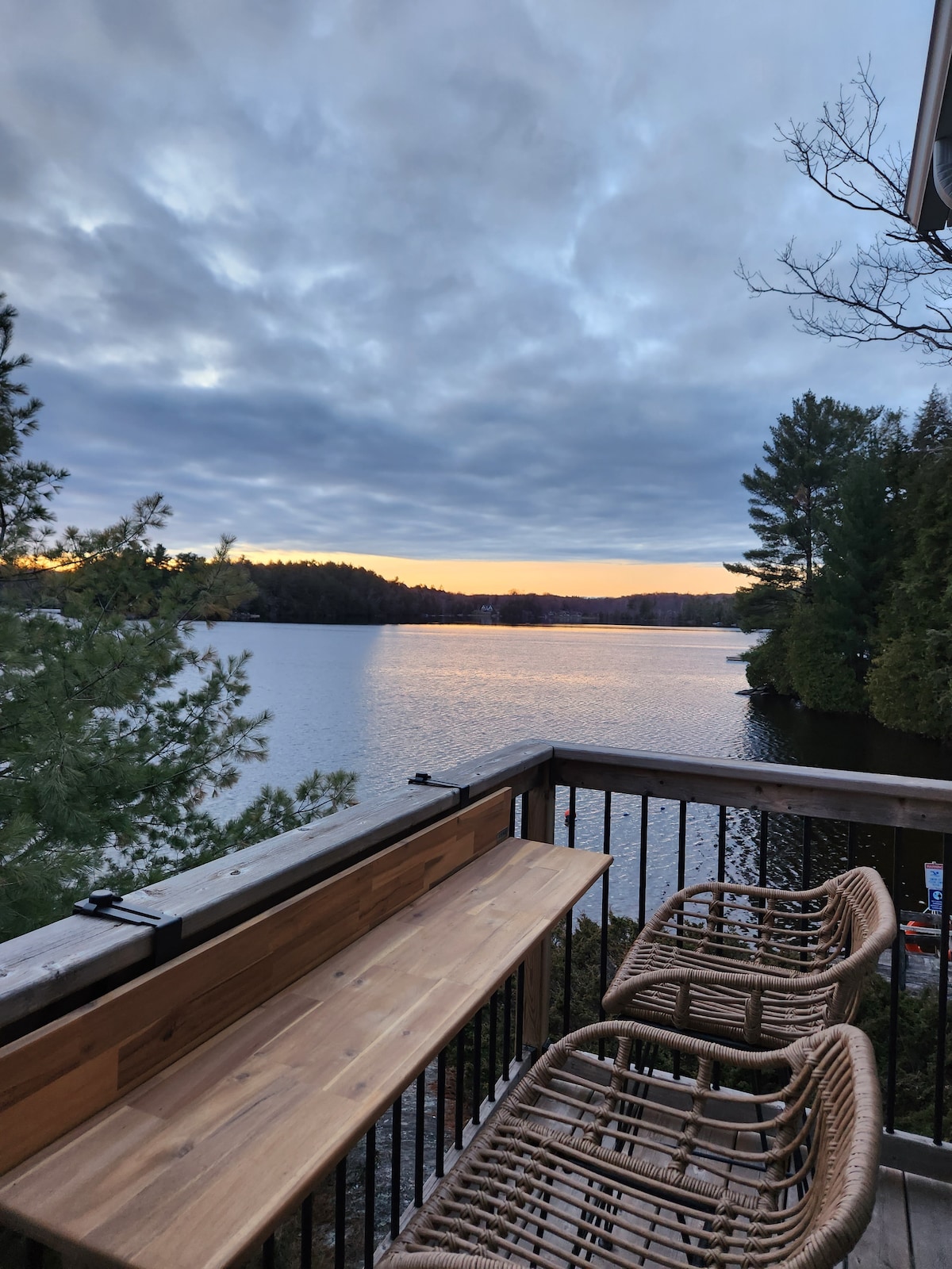 ¡Hermosa escapada a Muskoka! ¡Moderna casa de campo frente al mar de 4 estaciones! Impresionantes vistas. Ubicado en el pintoresco lago Nine Mile. Más del 70% del lago es tierra de la corona. Perfecto para hacer kayak y piragüismo para disfrutar de toda la belleza por la que Muskoka es conocida. Tenemos kayaks, una canoa y una tabla de paddle para que la disfruten. Hay mucha exposición al sol en el muelle que puedes nadar todo el día. Cerca de senderos para hacer senderismo y motos de nieve. Del 15 de mayo al de octubre, mínimo 6 noches con check-in el domingo.