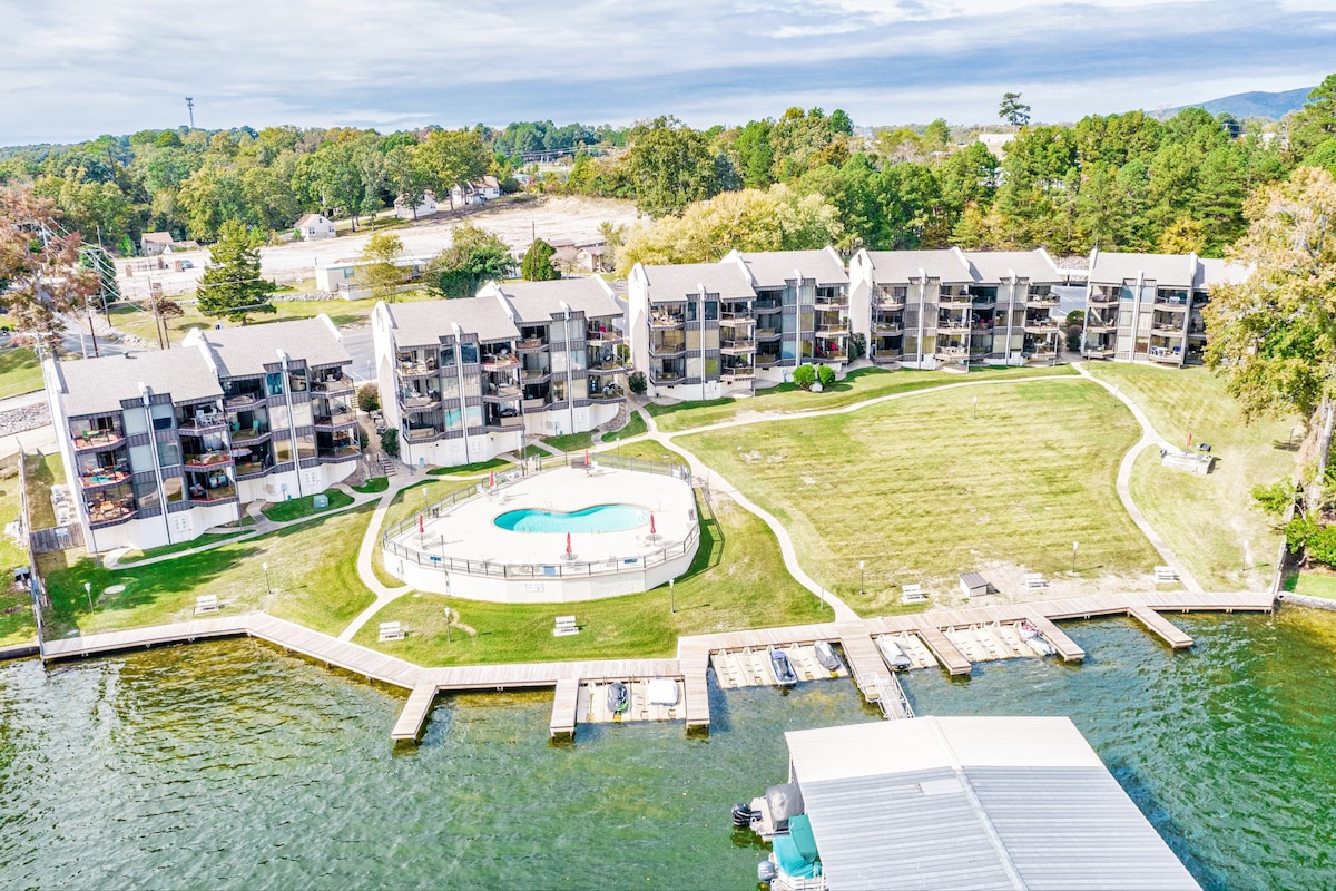 Este apartamento de 1 dormitorio/1 baño en la planta superior, RECIÉN REMODELADO, se encuentra justo al lado del agua y tiene una ubicación ideal para aquellos que quieran disfrutar de una de las mejores vistas del lago Hamilton. Incluye una cama tamaño king de felpa, 2 televisores inteligentes, parrilla, wifi y mucho más. Repleto de comodidades modernas y ampliamente abastecido para que tu estancia sea absolutamente perfecta. El balcón tiene vistas a la piscina y es ideal para tomar café por la mañana y/o bebidas por la noche. ¡Más que una ubicación, este apartamento está extremadamente limpio y a pocos minutos de todo lo que Hot Springs tiene para ofrecer!