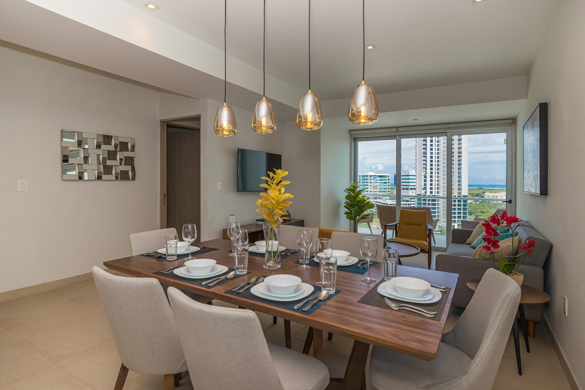 Nuestro hermoso apartamento es el mejor ubicado en la ciudad. Se ubica entre la zona hotelera y Plaza Las Américas en frente de la Plaza de Toros; Donde hay bares y cantinas estilo 100% mexicano, música en vivo y mariachis). Our beautiful apartment is the best located in the city. Between the hotel zone and Plaza Las Américas mall right in front of one of the most emblematic places Plaza de Toros; Where you can find bars and canteens 100% Mexican style, unique atmosphere and live mariachis).