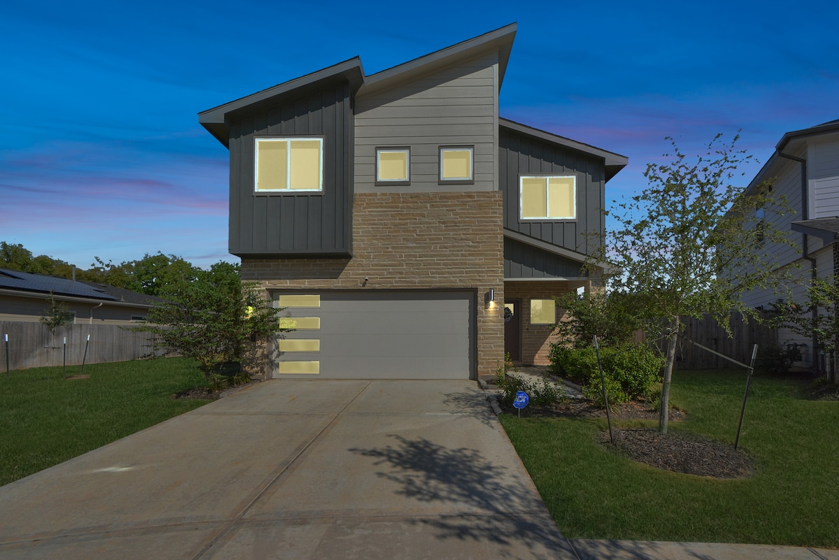 ¡Experimenta el lujo moderno a pocos minutos del centro de Houston! Esta nueva casa de 3 dormitorios y 3 baños está diseñada pensando en familias y grupos, y ofrece un diseño elegante y servicios aptos para niños. Relájate en espacios con suelo de mármol o disfruta de la diversión al aire libre con fogata, barbacoa y columpio. Ya sea que estés viendo un partido, explorando la ciudad o relajándote en casa, este Airbnb es perfecto para todos. Cocina totalmente equipada, lavadora/secadora y artículos básicos para bebés. ¡A solo 15 minutos del aeropuerto! Wifi de alta velocidad incluido.