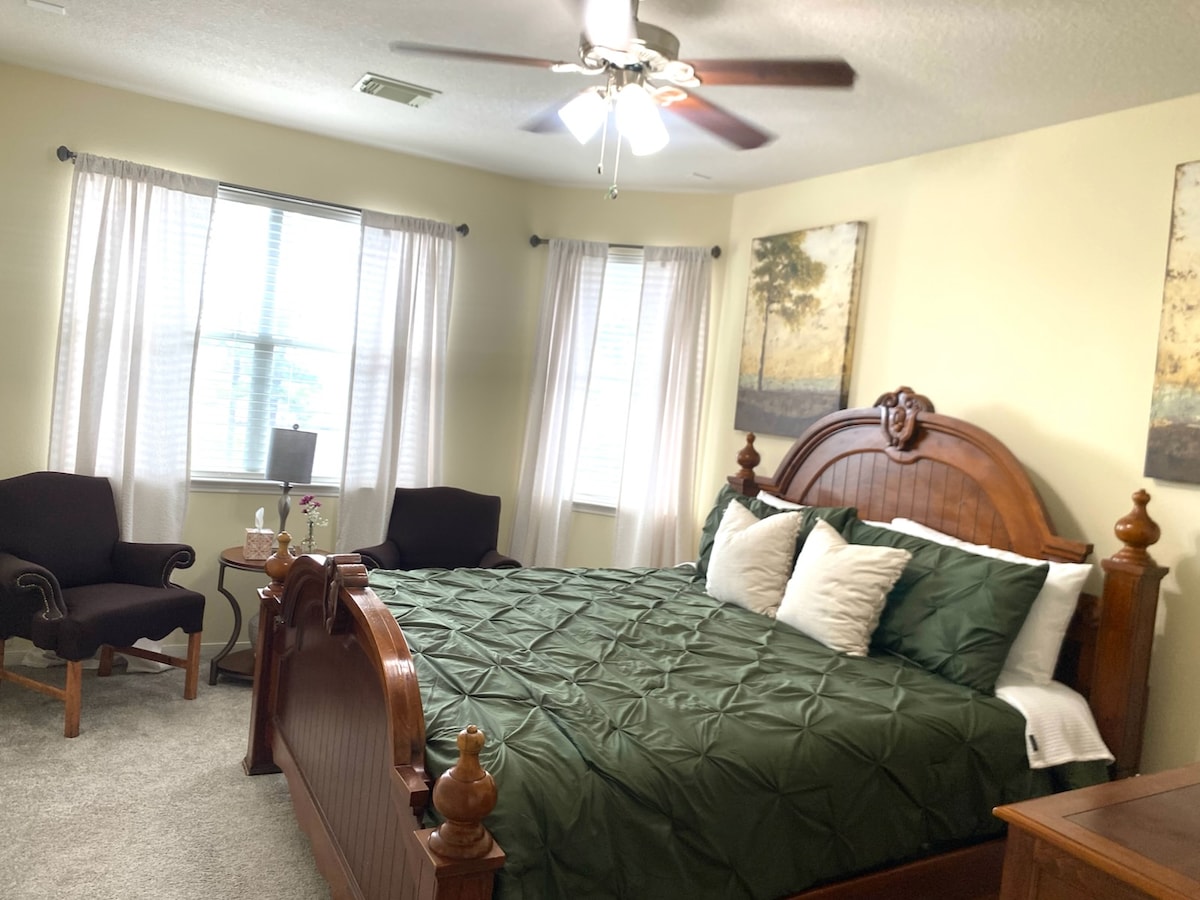 Crepe Myrtle Place es nuestra casa familiar tradicional donde vivimos con nuestras hijas adultas. Ofrecemos el uso de un dormitorio privado con baño compartido en la planta superior. Hay senderos seguros para caminar por todo el barrio tranquilo. Ofrecemos desayuno continental y no hay gastos de limpieza. El centro comercial Houston Outlet, restaurantes y tiendas de comestibles se encuentran en el barrio. El Festival del Renacimiento de Texas está a 40 minutos. Hay acceso directo a las autopistas 290 y 99 de peaje. Solo adultos mayores de 21 años.