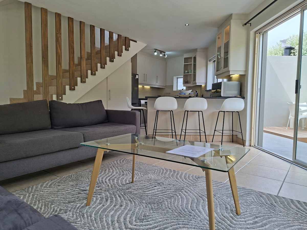 Una casa adosada bellamente presentada en una gloriosa ubicación de playa. Ofrece vistas majestuosas al mar, al puerto y a la montaña desde todos los espacios. Acabados y accesorios de primera calidad en todas partes, así como una acogedora chimenea. Una piscina reluciente completa la imagen. A poca distancia a pie de un gimnasio, restaurantes y tiendas. Hay estacionamiento seguro dentro del estacionamiento privado del complejo. El mejor lugar para vacaciones/trabajo a distancia en Ciudad del Cabo: wifi potente, TV por satélite, Netflix cargado, reducción de carga asistida con una unidad de respaldo eléctrico.