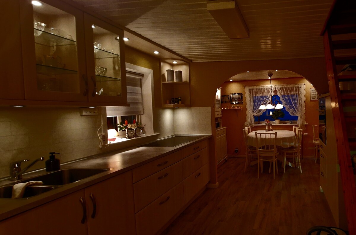 La casa fue renovada en 2016 y está en 2 plantas. La casa está en el corazón de Vágur y la ubicación es fantástica. Aparcamiento gratuito. A 100 metros hay una tienda de ropa, un supermercado, un museo de arte con Ruth Smith, un pub y una parada de autobús. A 200/300 metros tiene 2 gasolineras y un hermoso parque. Aproximadamente 1,5 metros hay 50 metros de piscina, con spa, masaje, fitness. Al lado también hay una sala de actividades, con pista de running, pared de escalada y campo de fútbol, etc. Hay muchas oportunidades para caminar en la naturaleza.
