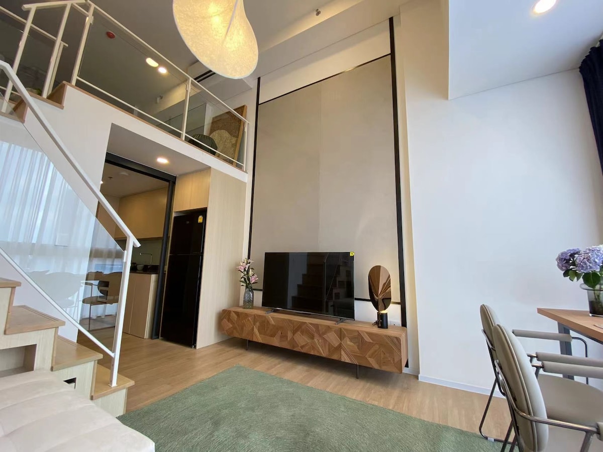 Amplia unidad lujosamente decorada de 1 dormitorio, 1 sala de estar y 1 baño para que hasta 2 huéspedes se alojen cómodamente. A 1 minuto a pie del metro. La higiene y la seguridad son nuestras principales prioridades. Para desplazarse, sin duda es muy fácil, ya que está en el metro y cerca del centro de la ciudad. También es fácil conseguir un taxi (si no prefieres Grab). Para comer, puedes ir cómodamente al Seven Eleven de abajo y hay varios restaurantes al otro lado de las calles. El mercado nocturno local está justo enfrente del apartamento.