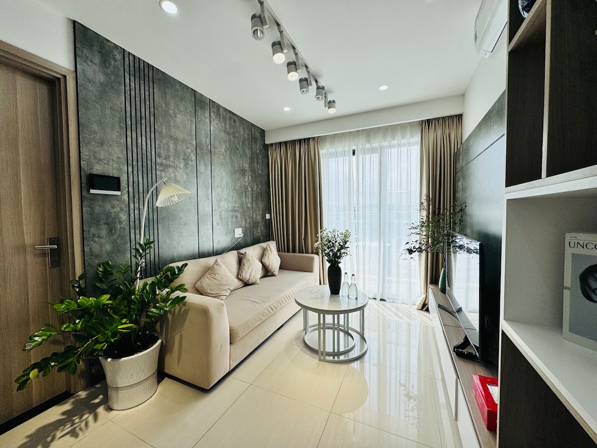 - 2 bedrooms, 2 bathrooms, and a large sofa bed - Balcony and windows with views of the pool and the city - Conveniently located near popular tourist attractions and dining areas - Spacious living room with a dining table, perfect for families - Free access to the swimming pool and gym in the building - Fully equipped with amenities: air conditioning, internet-connected TV, refrigerator, washing machine, dryer, kitchen, and cooking utensils,..