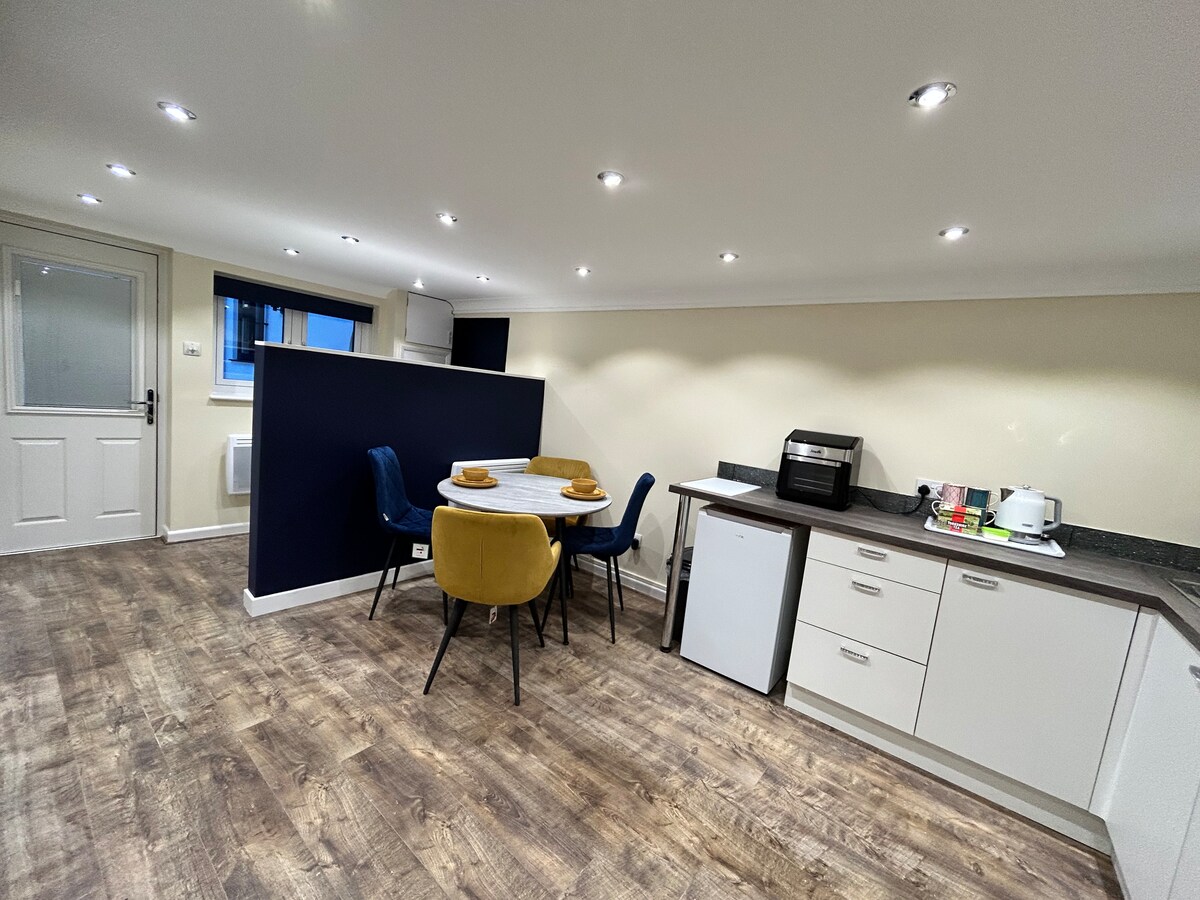 Amplio anexo independiente. Tiene su propia entrada y patio independiente para mayor privacidad. Cocina/sala de estar de planta abierta. El baño cuenta con una gran ducha. Se proporcionan toallas. Cerca del centro de la ciudad, tiendas, estación de tren y del río Crouch. Otros aspectos destacables: Hay un hervidor de agua, tostadora, microondas y una tostadora/parrilla para sándwiches. Esta es una COCINA PEQUEÑA, no una cocina completa. El desayuno se proporciona en forma de pan, cereales, una selección de zumo de manzana y naranja, té y café, etc.