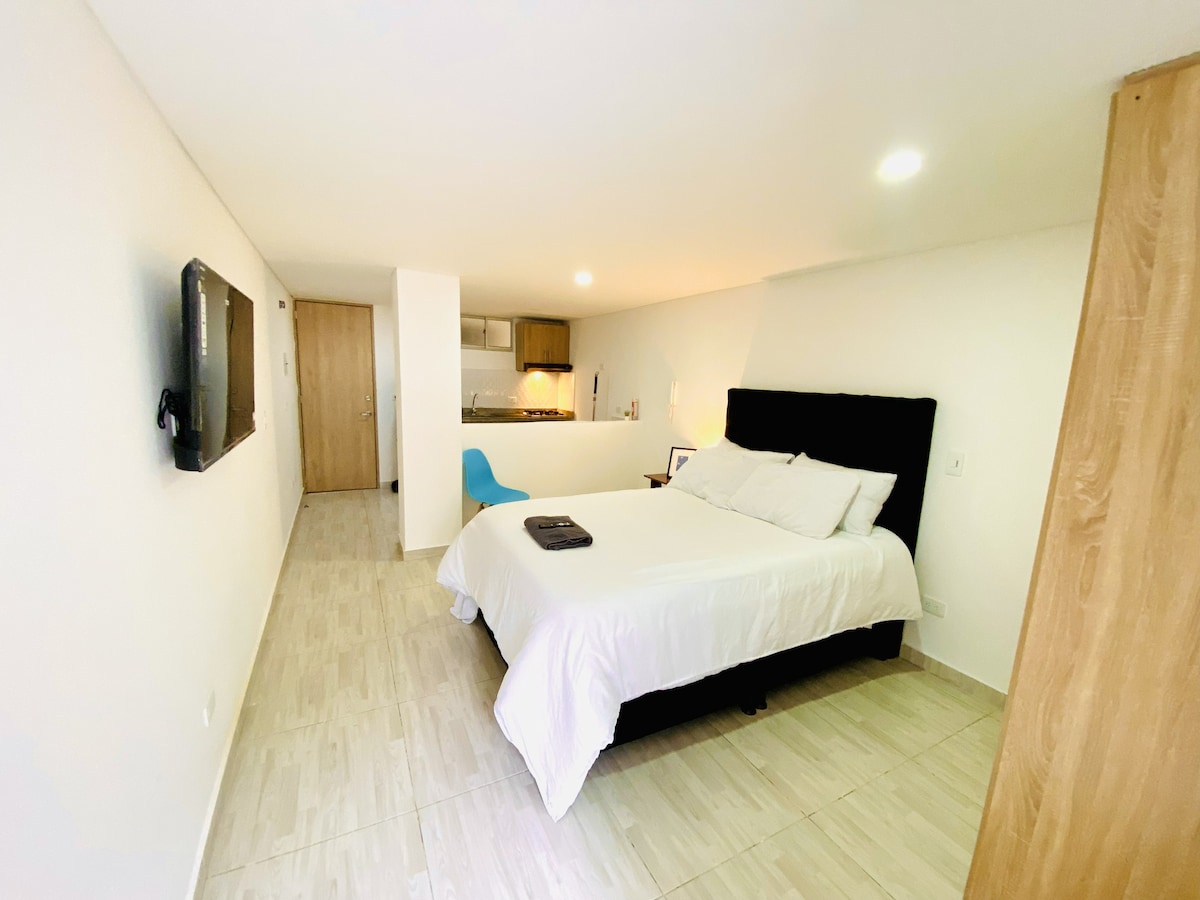 Acogedor apartaestudio independiente, ideal para descansar. Cocina equipada, sala-comedor y espacio de trabajo. Con wifi 1000 Mb de fibra óptica, TV Smart 150 canales, nevera, lavadora, cafetera y microondas. Cerca de CC Santafé, CC Carulla 184, CC Panamá y la Autopista Norte, a pocos minutos de los sitios turísticos de la Sabana de Bogotá. Check-in: de 3:00 PM a 8:00 PM sin costo adicional. Después de las 8:00 PM, se aplicará un recargo de 15 USD.