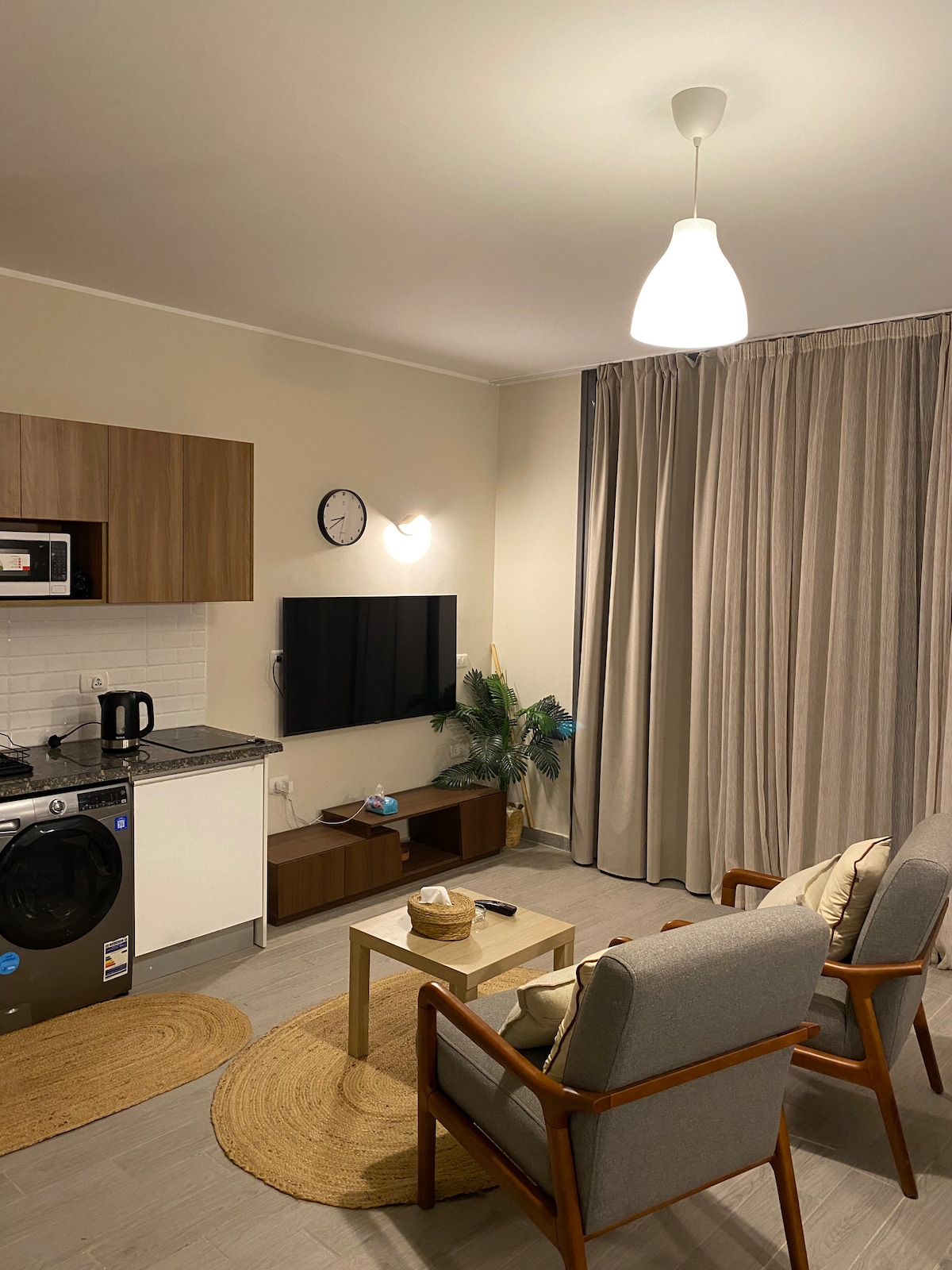 Enjoy a cozy, fully furnished studio inside the secure Tiba View compound, just minutes from the beach. It features a comfy double bed, a private bathroom with shower, a fully equipped kitchen, AC, and free WiFi. Ideal for solo travelers or couples seeking a peaceful escape. Guests can also enjoy access to swimming pools and rooftop views. Book now and enjoy a relaxing stay by the sea!.