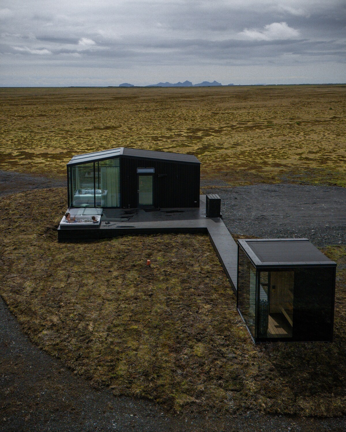 Disfruta de un lujo y comodidad incomparables en una playa de arena negra con hermosas vistas alrededor. Hay una cocina totalmente equipada y un baño en nuestra casa de servicio compartida en la propiedad, a unos 200 metros de la cúpula, así como cabañas de aseo a poca distancia a pie de la cúpula.