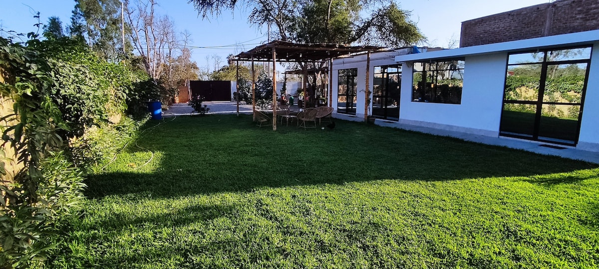Si buscas un alojamiento que te brinde el confort y la comodidad como en tu hogar, este es el ideal. A solo 8 minutos en taxi del centro de la ciudad y a 5 minutos de Huacachina. 🏠 Juegos de mesa y micrófono para karaoke. 🎤 ✅Sala-comedor/ cocina con aire acondicionado ✅1 habitación con aire acondicionado ✅2 habitaciones con ventilador ✅ Terma solar ‼️A Set 2025 hay una construcción frente a la casa (trabajan de 6am a 6pm) y no genera ningún impedimento de entrada y salida a casa. 😊