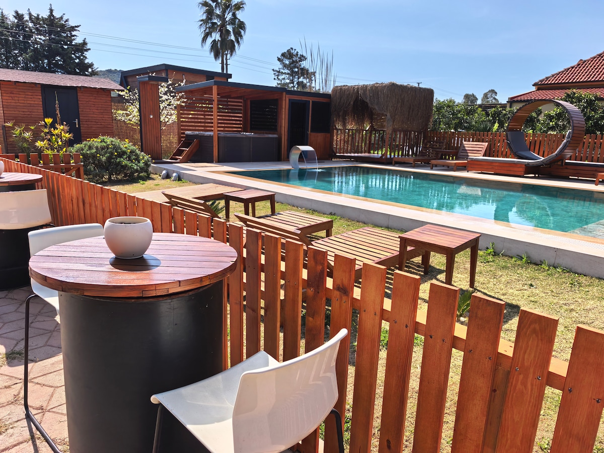 Nuestra villa de madera con piscina privada (con piscina caliente en invierno) en Hisarönü, Marmaris, te permite tener unas vacaciones tranquilas con su jardín y piscina. Ofrece fácil acceso a la playa en 5 minutos en coche, las bahías de Marmaris en media hora y Marmaris en 15 minutos. Puedes beneficiarte de las frutas y verduras orgánicas en nuestro jardín y crear recuerdos agradables con tu familia y amigos utilizando nuestra barbacoa. @alibabahomess