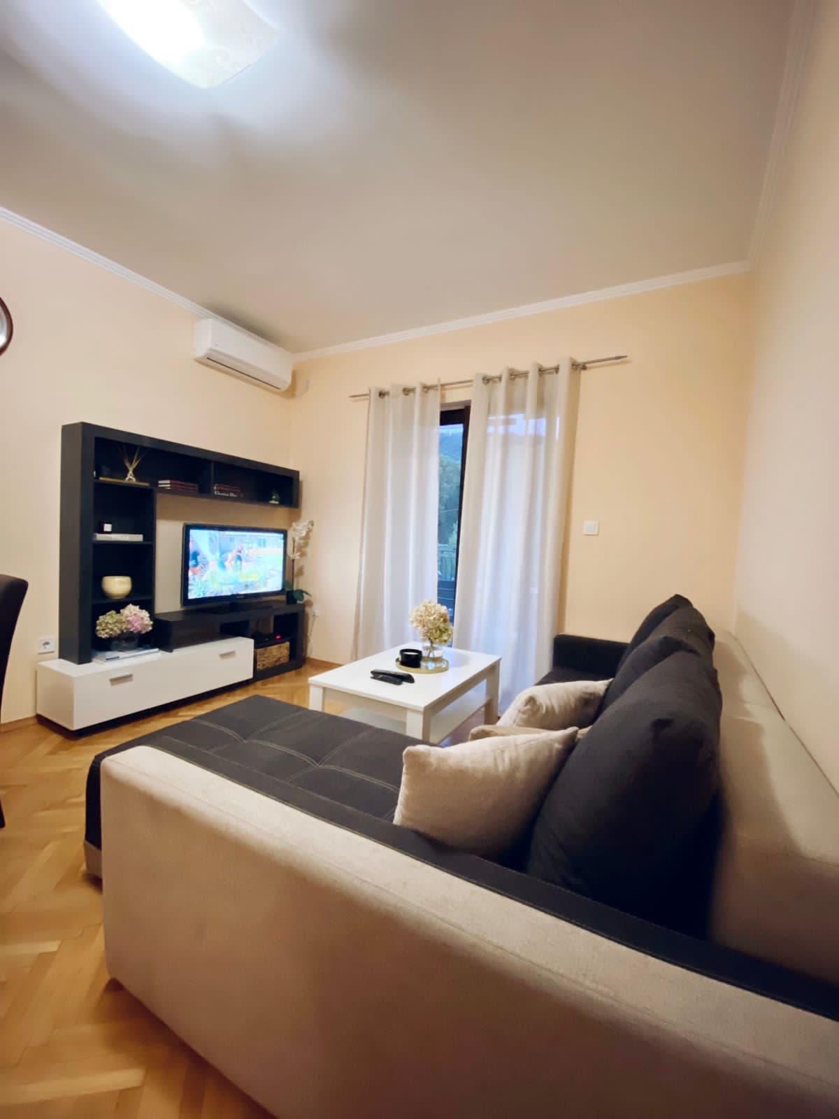 Apartamento con entrada privada. Tiene todo lo que una familia necesita, desde una cocina grande, baño grande, lavadora, aire acondicionado y un gran televisor. Cerca del centro de Igalo con tiendas y mercados cercanos y a solo 100 metros del mar. El apartamento tiene un estacionamiento privado y conexión directa con la autopista. Tu estadía aquí será tranquila, segura y segura. Diviértete con toda la familia en este elegante lugar.