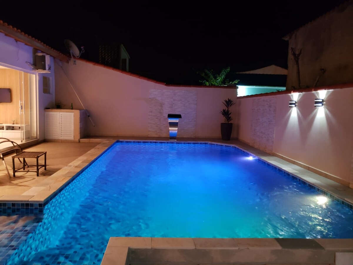 Casa encantadora en Ilha Comprida/SP, a 100 m de la playa y espacio para mascotas Escapada ideal para familias y amigos, con 3 dormitorios, 2 baños, sala de TV, amplio comedor, cocina equipada y wifi rápido. Jardín de césped (150 m²), balcón cubierto, ducha y acogedora zona al aire libre. Ubicación estratégica, cerca de mercados y panaderías (200 m), muelle y quioscos (2 y 3). A solo 5 minutos (2 km) en coche de Boqueirão, centro de la isla. ¡Te esperan comodidad, ocio y conveniencia!