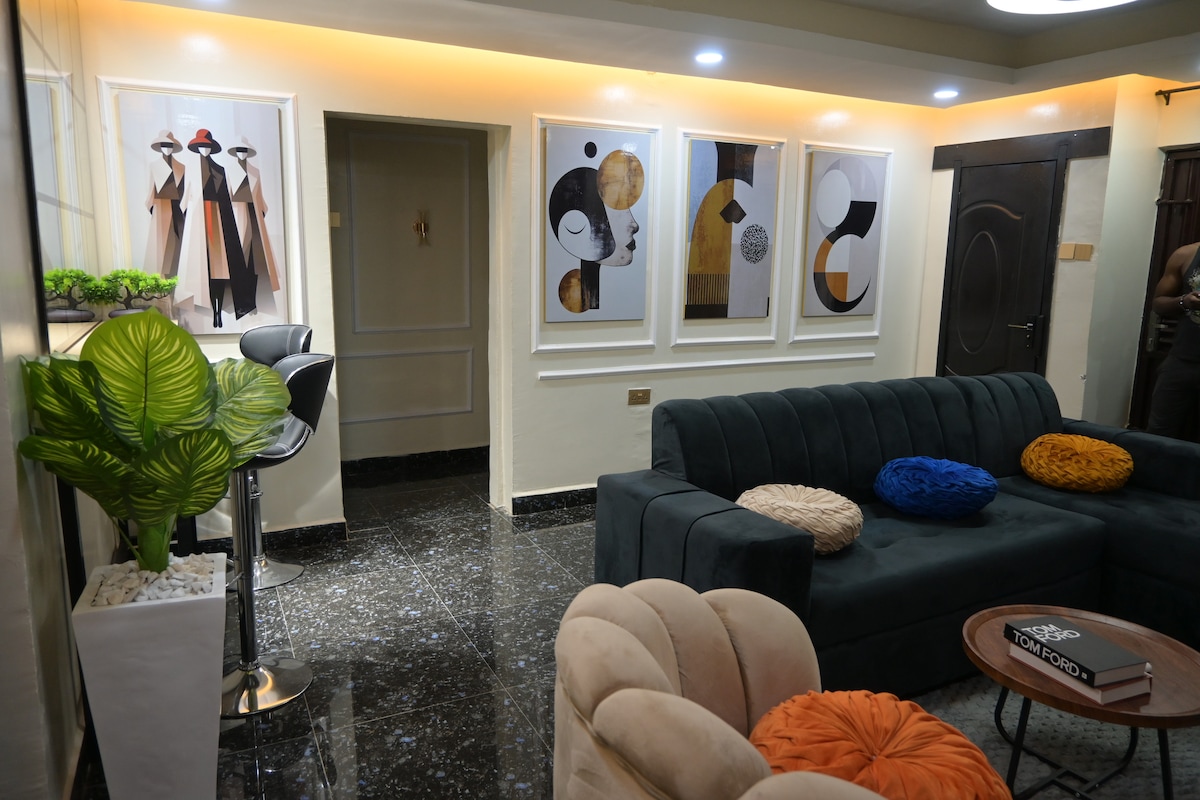 Te damos la bienvenida a nuestro alojamiento escandinavo Wabi-Sabi de un dormitorio en Opebi, Ikeja. Este sereno escondite combina un diseño minimalista, texturas naturales, vegetación exuberante y un acogedor espacio al aire libre. Disfruta de una zona de minigolf relajante, brisas frescas y naturaleza a tu alrededor. El dormitorio en suite cuenta con una cama tamaño king, cálidos tonos terrosos, una acogedora sala de estar con Netflix, conexión WiFi gratuita y una cocina totalmente equipada, todo en una comunidad cerrada a pocos minutos del aeropuerto y cerca de bancos, restaurantes y tiendas de comestibles.