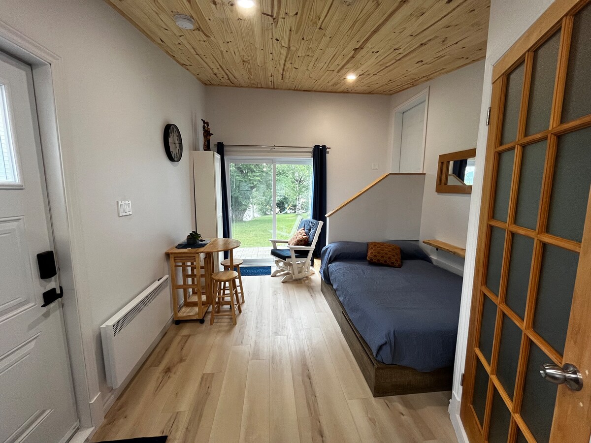 Ce coin indépendant de notre maison devient chez vous le temps de votre séjour! Suite récemment rénovée avec entrée indépendante et autonome. Dans un quartier paisible, avec stationnement gratuit et accès Wifi inclus. Cuisinette équipée: ustensiles, assiettes et autre, petit frigo, four grille-pain. Salle de bain privée. Literie et serviettes incluses. Il ne manque que vous!