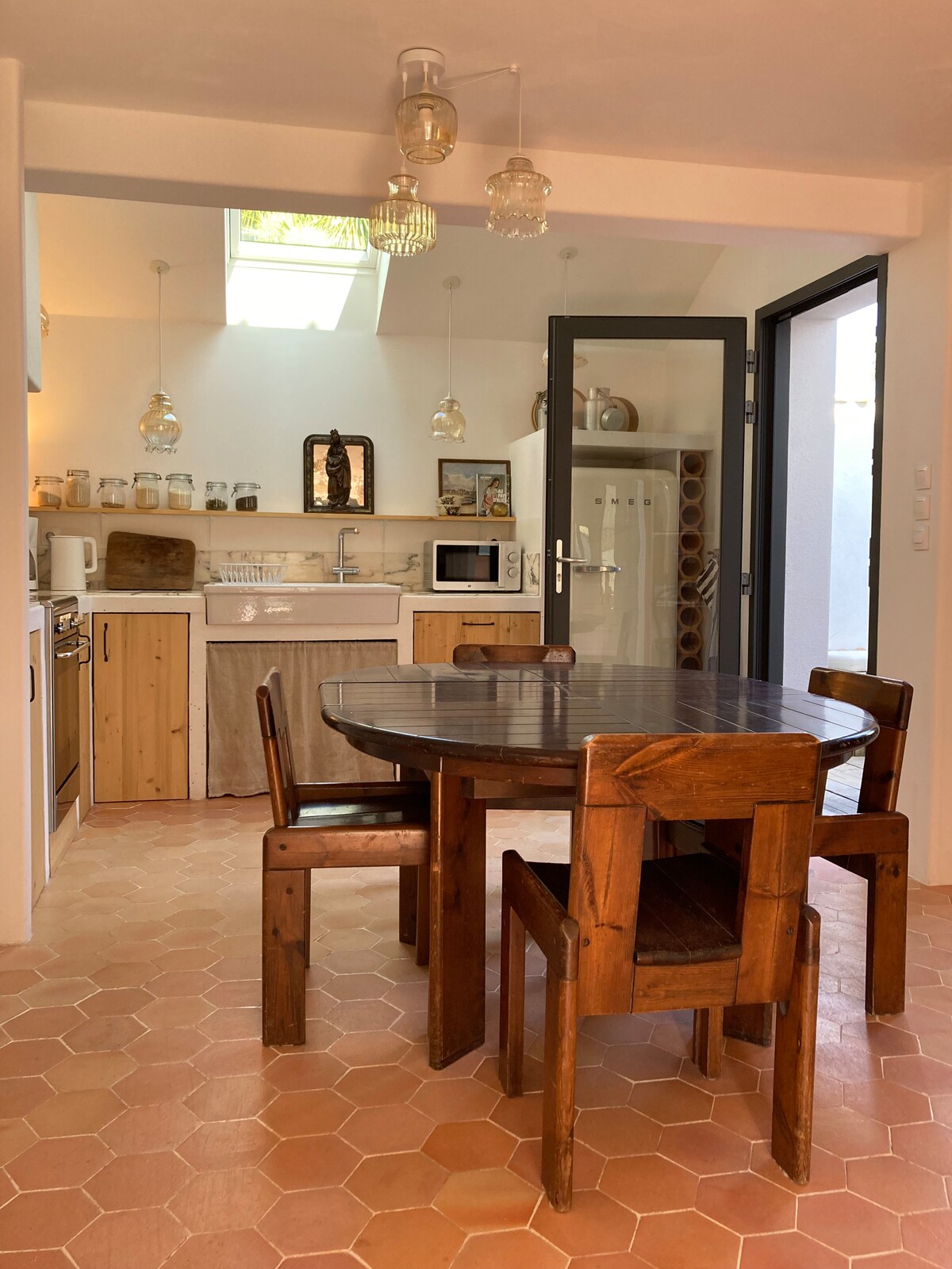 Ubicación ideal para moverse a pie por Roscoff: a 5 minutos andando del centro histórico de la ciudad (tiendas, restaurantes y puerto viejo). Cruce la calle y se encontrará en el Thalasso & Spa y a 50 metros del mar (playa de Rockroum, ideal para una cita familiar los domingos). También está idealmente situado para ir a la isla de Batz. Apartamento con encanto recién reformado por un arquitecto (2024). ¡Diseño, colorido y piezas decorativas elegidas idealmente para que te sientas como en casa!