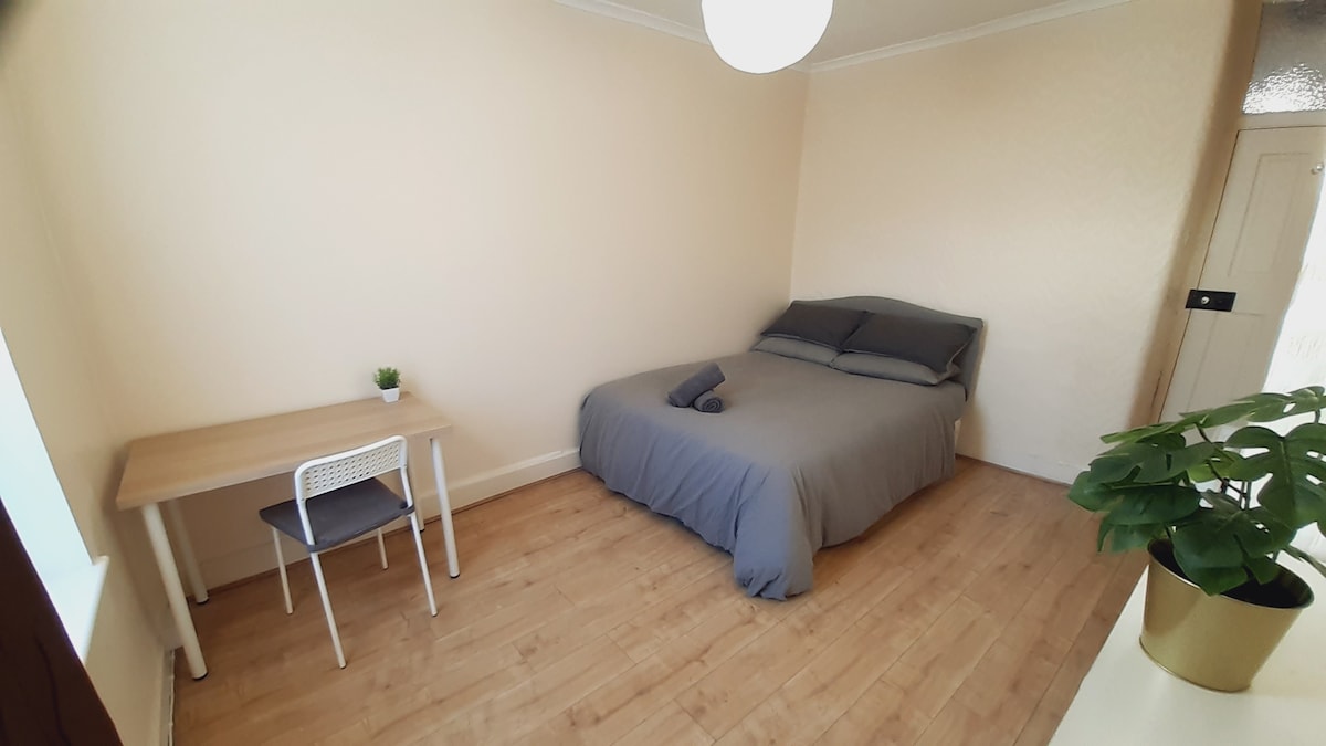 Habitación privada. Cama doble con un colchón cómodo. Acceso a una ducha en un baño recientemente renovado. Se proporcionan toallas/ ropa de cama adicionales si se solicita. La casa está situada a 30 a 60 minutos del centro de Londres, dependiendo de a dónde quieras ir/a qué estación uses. Hay un viaje de 3 minutos en autobús del metro de Elm Park o a 10 minutos en autobús de la línea Romford/Elizabeth. Ambos te llevan al centro de Londres. La línea Elizabeth te lleva a Liverpool Street en 24 minutos. El autobús es 252 y la parada de autobús es RK. Supermercado Tesco a 10 minutos a pie