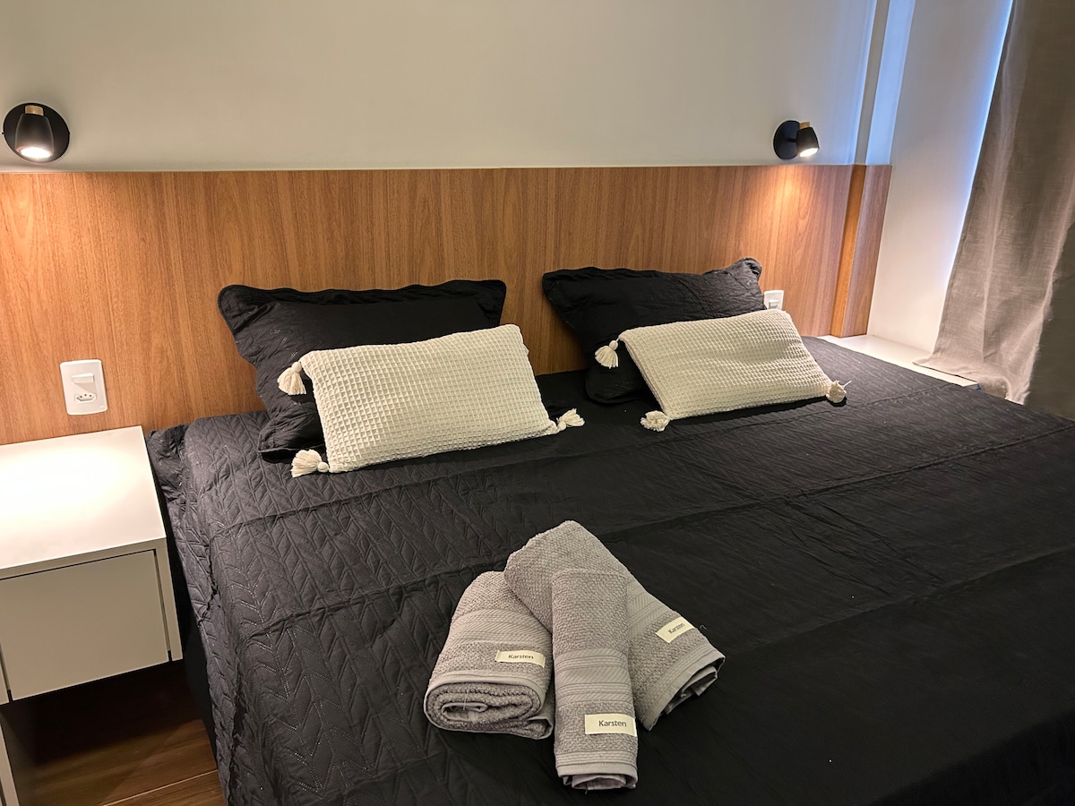 Amplio apartamento frente a la mejor parte de la playa de Barra, un lugar súper tranquilo, pero muy cerca de tiendas y los mejores bares y restaurantes de la región. El edificio tiene servicios de hotel, conserjería y recepción las 24 horas, servicio de limpieza y limpieza, restaurante en el edificio, piscina, sauna, jacuzzi, espacio para niños. Preparamos este espacio con gran cuidado para amigos, parejas y familias de todas las tribus para aprovecharlo al máximo. ¡Vamos! De unos días.