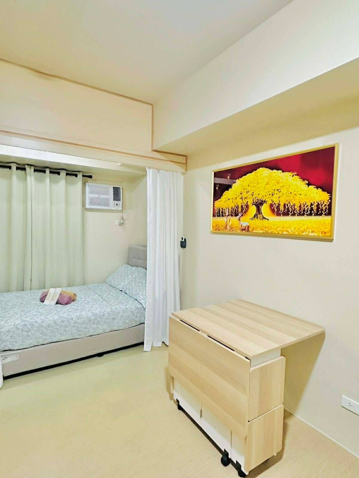 Este lugar minimalista y relajante se encuentra en el centro de la ciudad de Iloilo y cerca de centros comerciales y destinos imprescindibles (Casa Emperador, iglesia y plaza de Molo). Esta habitación tiene una cama tamaño queen y ofrece servicios similares a los de un hotel, como TV Sony de 55 pulgadas, wifi gratuito con velocidad de internet rápida, nevera, aire acondicionado, hervidor eléctrico, bidé con función de lavado femenino y trasero, calentador de agua (ducha caliente), arrocera, estufa de inducción y utensilios de cocina. También hay piscina (2 personas) y gimnasio disponibles.
