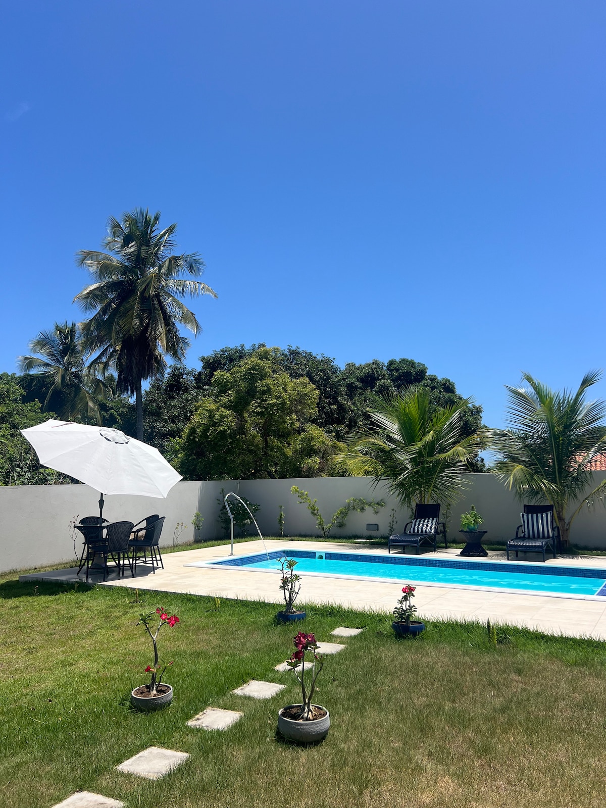 Situada a 10 km de la playa del fuerte, y a 2 km de la playa de itacimirim, un lugar único para relajarse, la casa fue planificada para integrarse con la naturaleza, con el concepto de áreas comunes abiertas, desayunas frente a la piscina, tenemos una cocina completa, mesa de billar, TV en la sala de estar, piscina, barbacoa, área de servicio con lavadora, 4 dormitorios todas suites con aire acondicionado, además de playas semidesiertas, y varias opciones de ocio en la región.