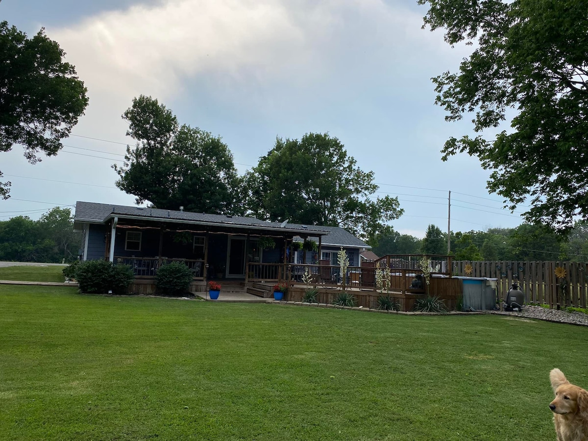 Nuestra cabaña de invitados se encuentra en 20 acres boscosos en las colinas de Osage, al final de un camino privado de grava. Se siente completamente aislado, pero está a solo 10 minutos del centro de Bartlesville, a 20 minutos de Pioneer Woman's Merc y a una hora de Tulsa. Hay una cocina completa, sala de estar y baño completo en la planta baja, con una cama tamaño queen y dos camas individuales en el segundo piso. No hay televisión para interferir con la tranquilidad, aunque el wifi te mantiene conectado. Vivimos en la casa principal y siempre estamos disponibles si es necesario.