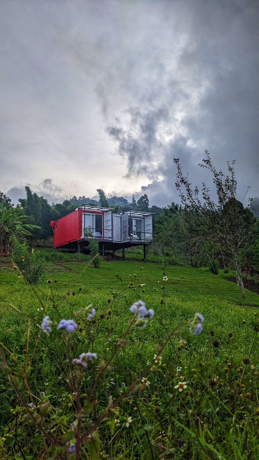 Enjoy the lovely setting of this romantic spot in nature with your loved ones . This Container home is situated right inside a beautiful farm land allowing you to take nature walk inside the whole farm , It has a magnificent mountain view and lake view right from the balcony. Caretaker will be available during your stay, Food can be ordered in the kitchen . Come and make memories Staying in this beautiful nature home with your loved ones . (pick up drop available) or drive in -