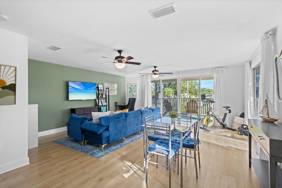 ☀ Fácil acceso a la playa; ¡solo cruza la calle! ☀ Elegante piscina climatizada compartida con estante para tomar el sol y tumbonas. ☀ Fogata con relajantes tumbonas giratorias, bicicletas Wagons de☀ playa, sillas de gravedad cero, enfriador, hielo, sombrillas, toallas, altavoces. Resplandor de☀ 3 hoyos en el putt oscuro ☀ Amazon Dots with Unlimited Amazon Music ☀ Patio vallado con asientos al aire libre, sombrillas y parrillas para barbacoa. ☀ Triplex con 3 suites decoradas de forma única: interiores privados, exterior compartido