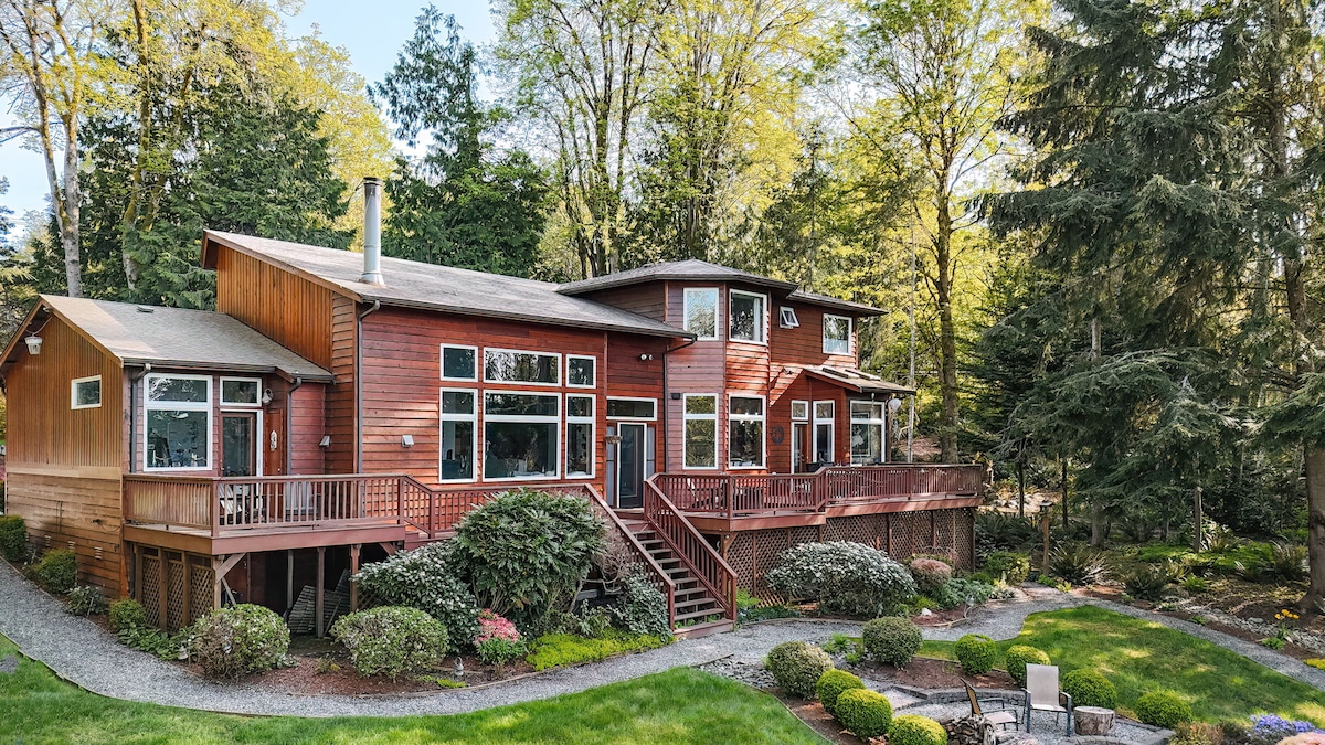 Esta idílica casa de campo en una carretera privada está a pocos pasos de un sendero hacia el Gran Bosque, pero la terminal de transbordadores está a menos de diez minutos. Está rodeada de majestuosos cedros y junto a un arroyo que balbucea tranquilamente en humedales protegidos. La casa principal está más abajo en la entrada.