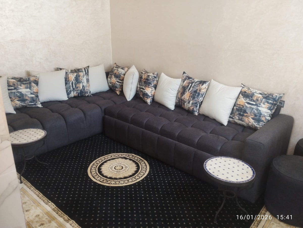 Apartamento familiar en una ubicación ideal que ofrece acceso directo a muchas tiendas y servicios. Encontrará todo lo necesario: tiendas de comestibles, peluquerías para hombres y mujeres, farmacia,cafetería y pastelería, hammam, panadería, a 1,3 kilómetros de MARJANE y estación de transporte al aeropuerto (24/24) autobús ALSA. A 15 minutos del aeropuerto en coche ,Un entorno práctico y agradable para una estancia sin preocupaciones."